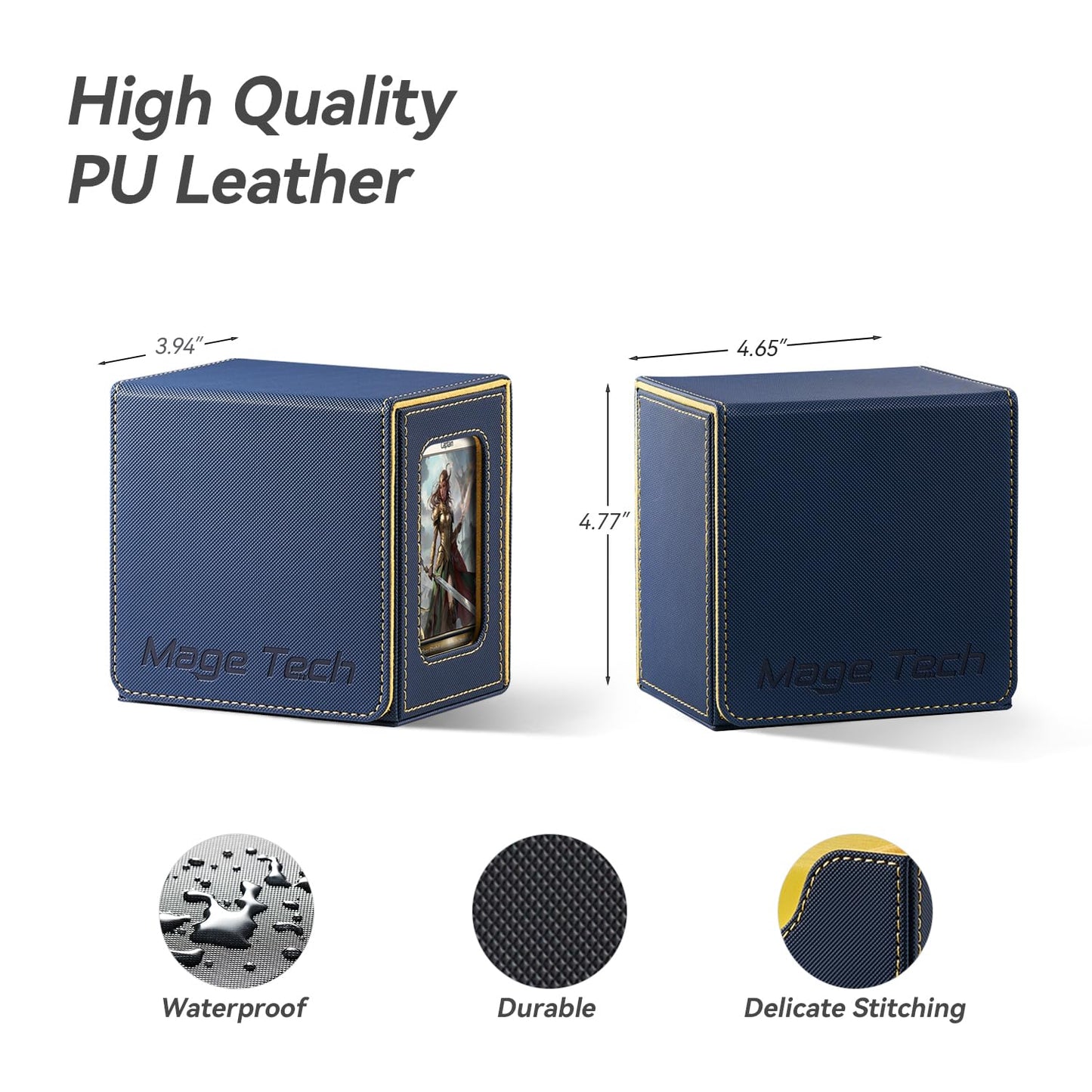 ["The ultimate Commander solution. Specifically designed for Commander EDH players, our innovative design is tailored for your Commander deck. Securely store your Commander card in the included 35pt card holder, complete with a card brick to prevent accidental shuffling. Proudly showcase your Commander in the designated slot.", "[Versatile and practical. This is not just a card sleeve; it's a versatile deck holder designed to securely store your 100-card deck. The U-shaped wide mouth makes it easy to retrieve cards during gameplay, providing convenience and peace of mind.", "[Large capacity. Tested with various popular sleeves, this box offers an impressive capacity, able to hold up to 100 double-sleeved cards or over 120 single sleeves (inner width 8 cm). The generously sized dice tray can hold up to 50 dice (14 mm), keeping all your gaming essentials neatly organized and easily accessible.", "[Durable protection. Equipped with strong magnets, our card box remains securely closed during transport, providing reliable protection for your cards. The UV-protective card holder adds an extra layer of security to keep your Commander card in pristine condition.", "[Effortless organization. Thanks to the Commander card slot, you can easily check the contents of the box without having to open each box individually. Whether you're an MTG, PTCG, or other TCG enthusiast, maintaining a well-organized collection is a breeze."]