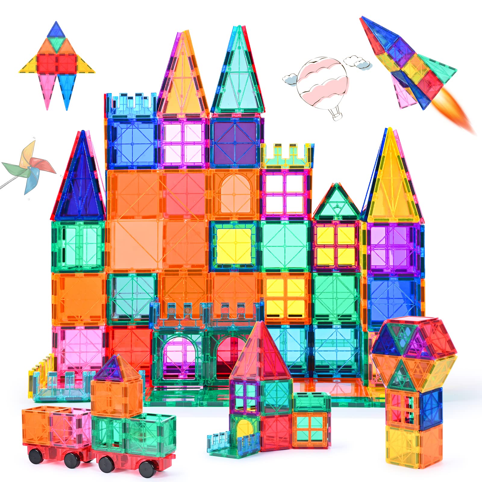Magnetic blocks 100Pcs for kids aged 3+ Strong magnetic Montessori toy Kids STEM learning toy Gift to promote creativity for boys girls (100 pcs)