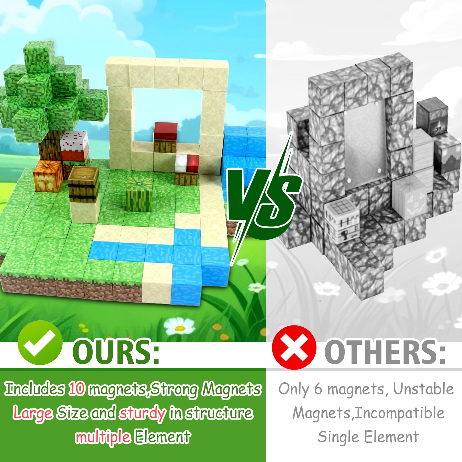 "Create Your Own Magnetic World 3D magnetic building toys offer a variety of magnetic blocks with complex architectural and natural designs, allowing children to build a variety of buildings and landscapes. Magnetic building blocks transport your child to a wonderful castle world or a fantasy world full of possibilities!