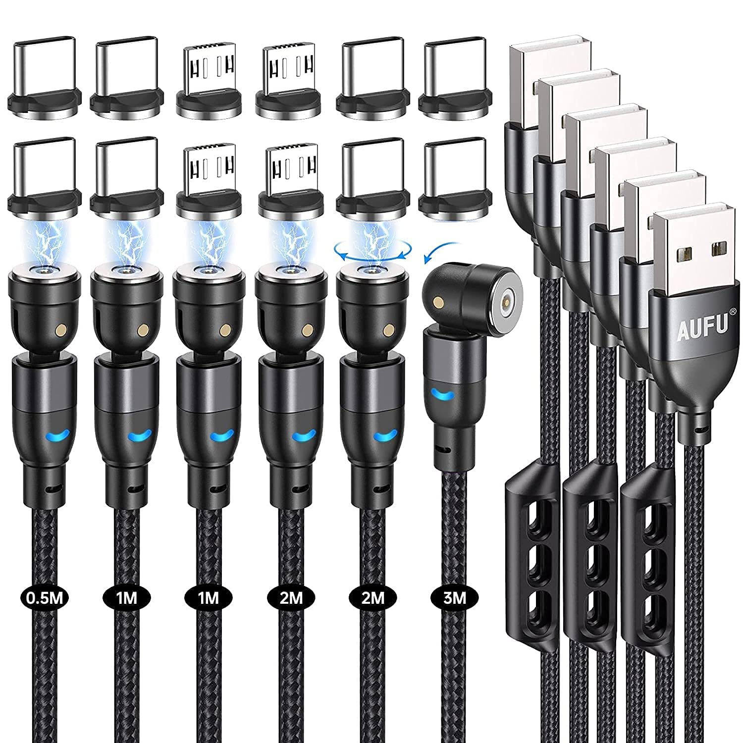 Magnetic charging cable, Magnetic charging cable [6 pieces, 0.5m 1m 1m 2m 2m 3m], USB C Magnetic Cable 360° and 180° Rotatable magnetic cable with Micro USB/Type C for smartphones