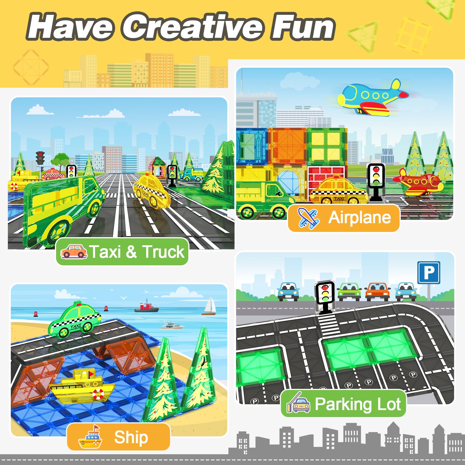 Magnetic tiles city street set, kids toy, sensory games for 3 year old boys and girls, magnetic blocks for kids ages 3-5, 4-8 years old, classroom, a must-have.