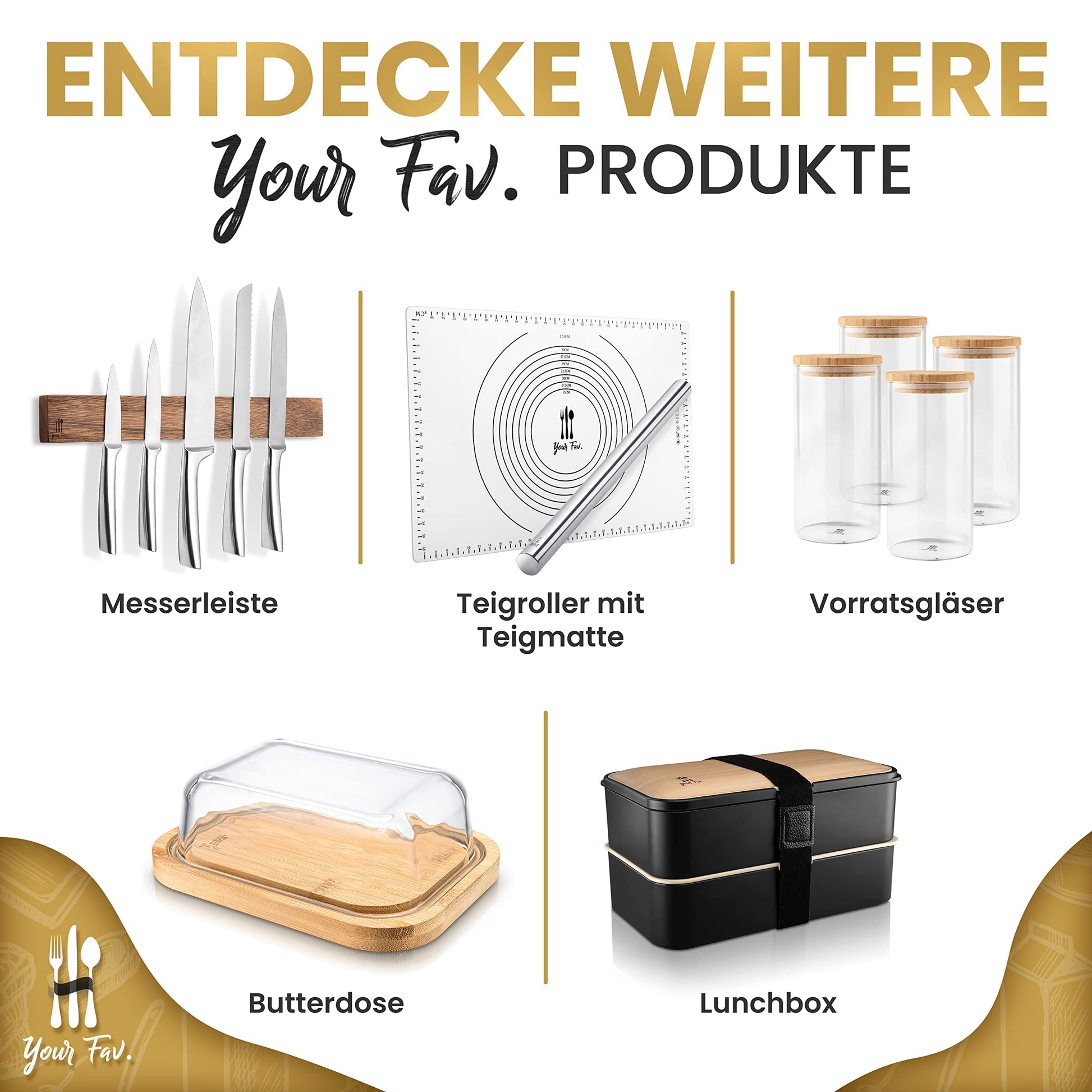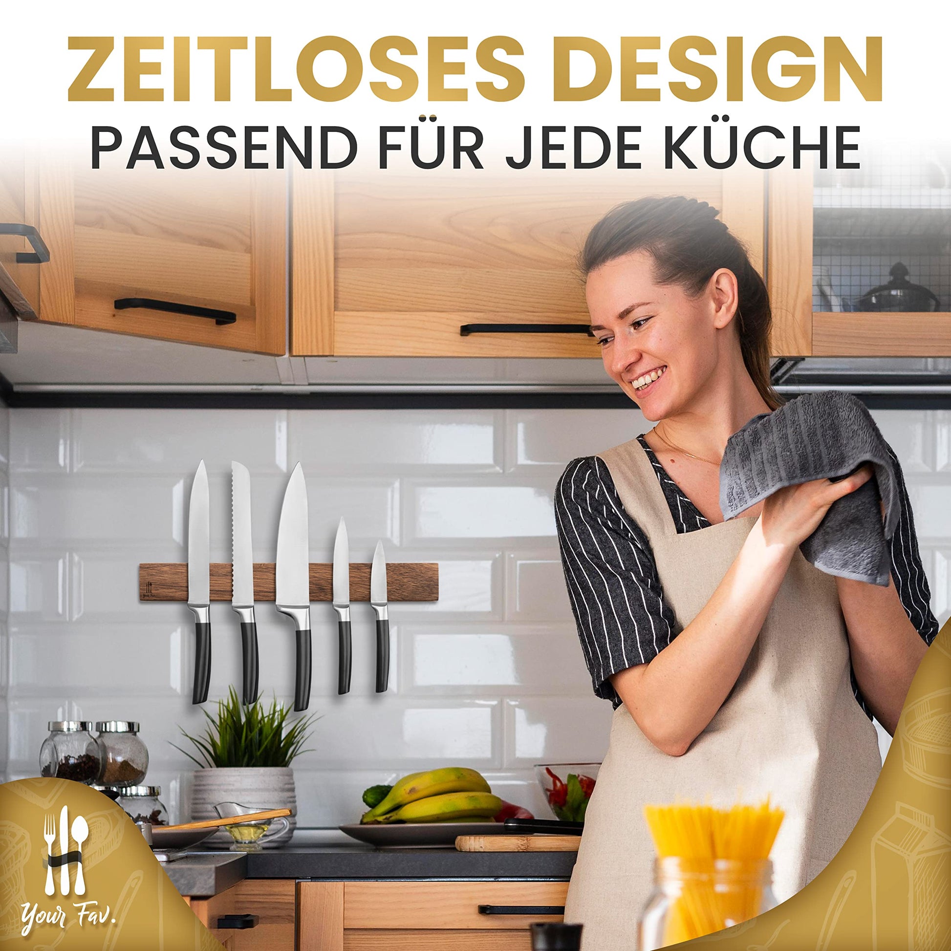 "🔪EINZIGARTIG – Our unique walnut wood knife magnet strip adds a natural charm to your kitchen. Discover the functionality of the magnetic knife holder and the stylish storage on the magnetic knife board.",