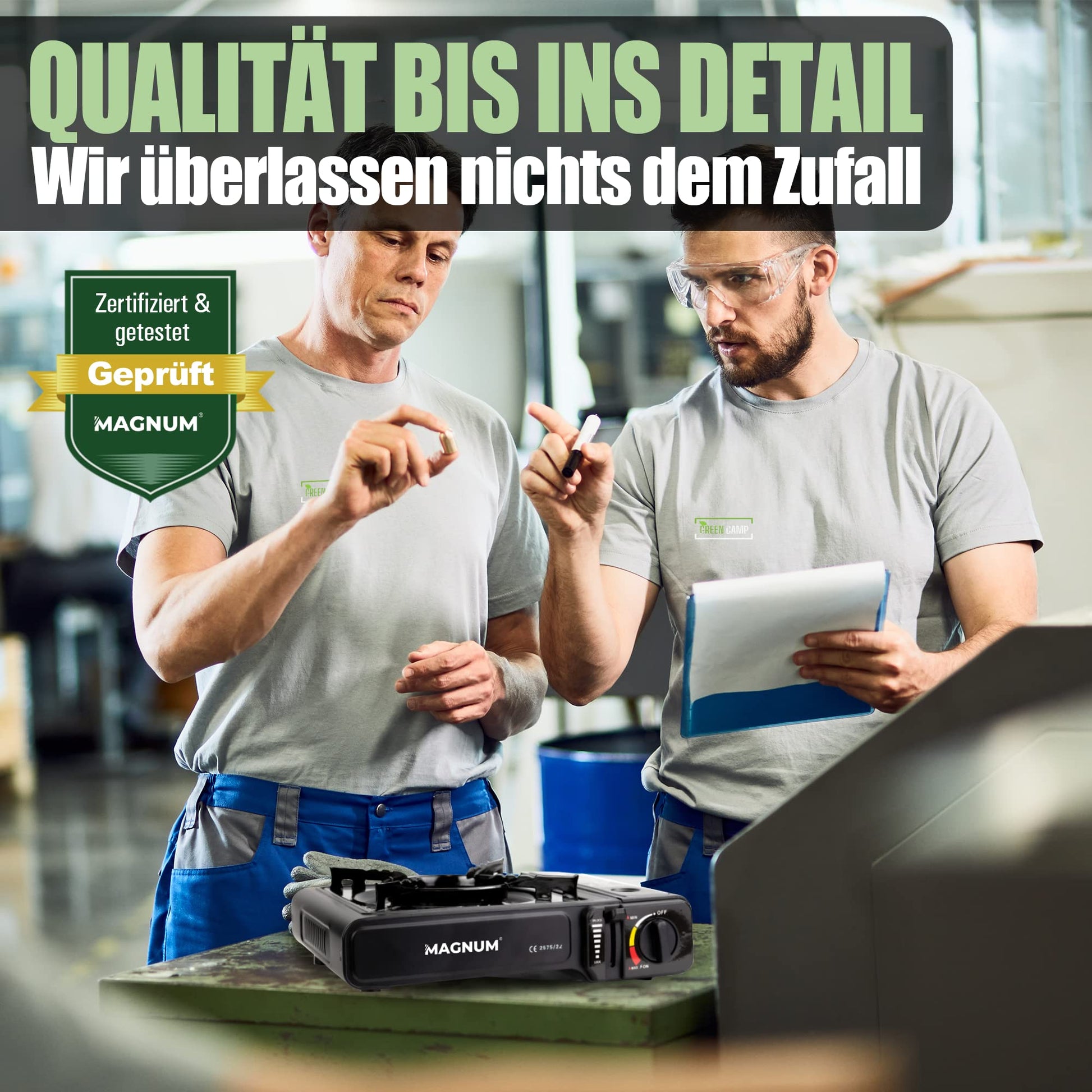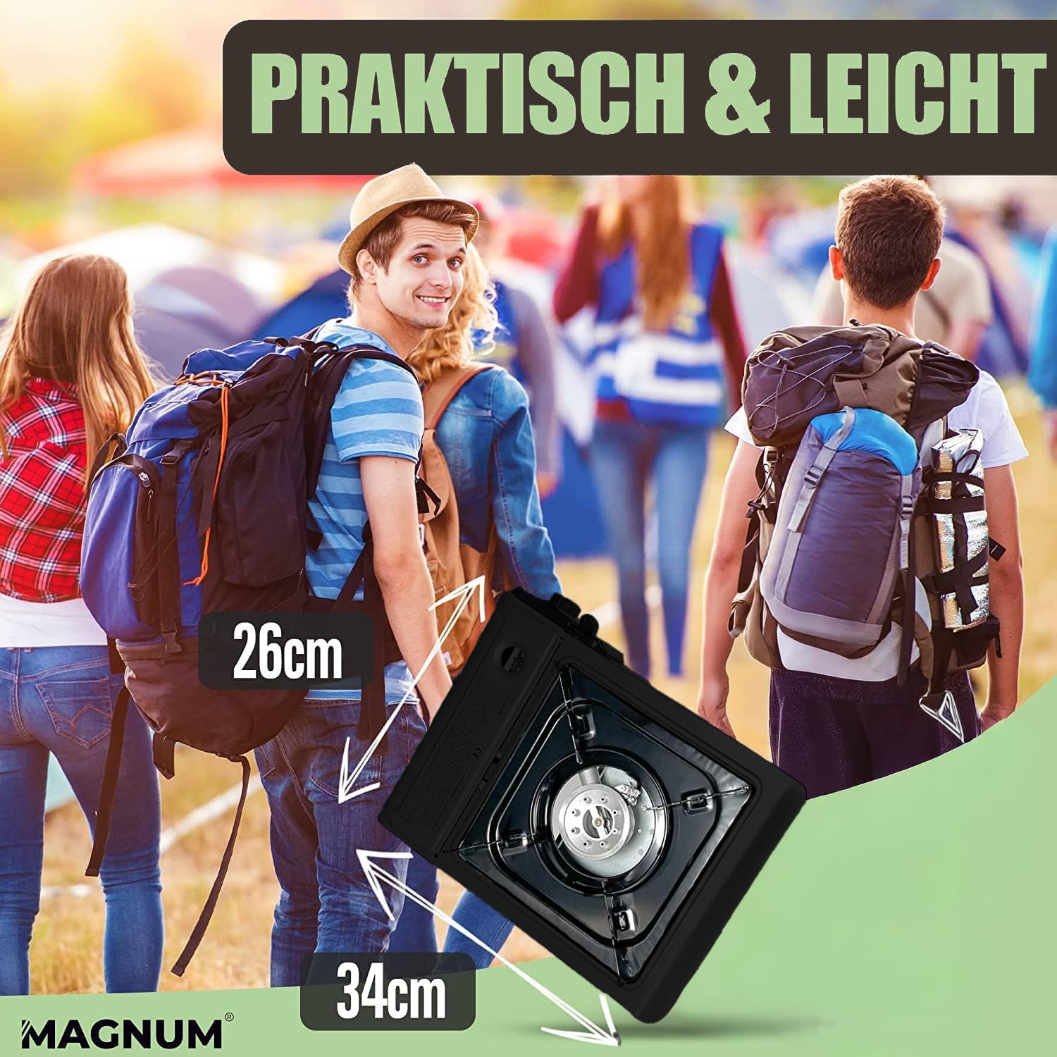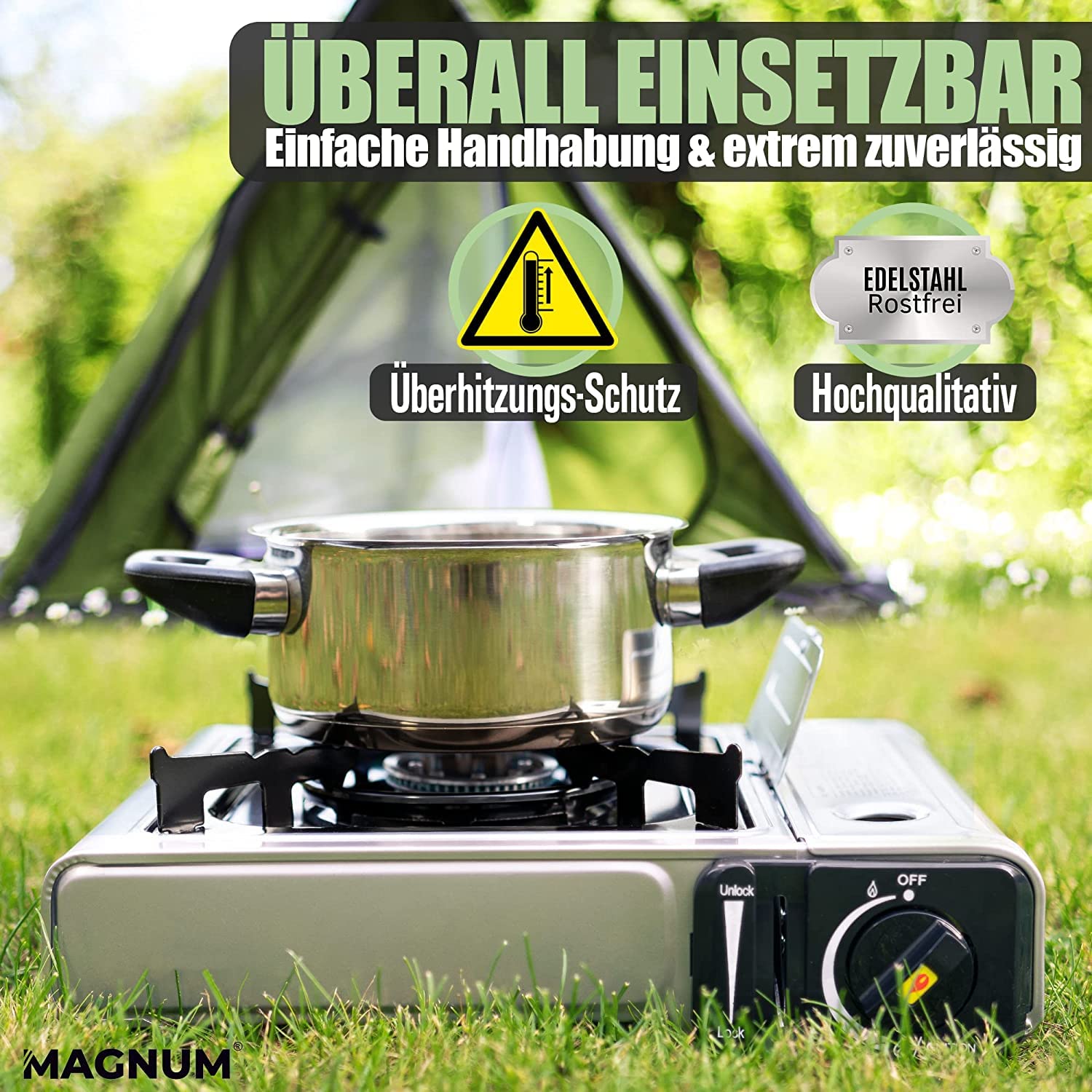 MAGNUM® gas stove incl. 4x gas cartridges and carrying case - camping stove with gas cartridges - camping gas stove complete set with piezo ignition