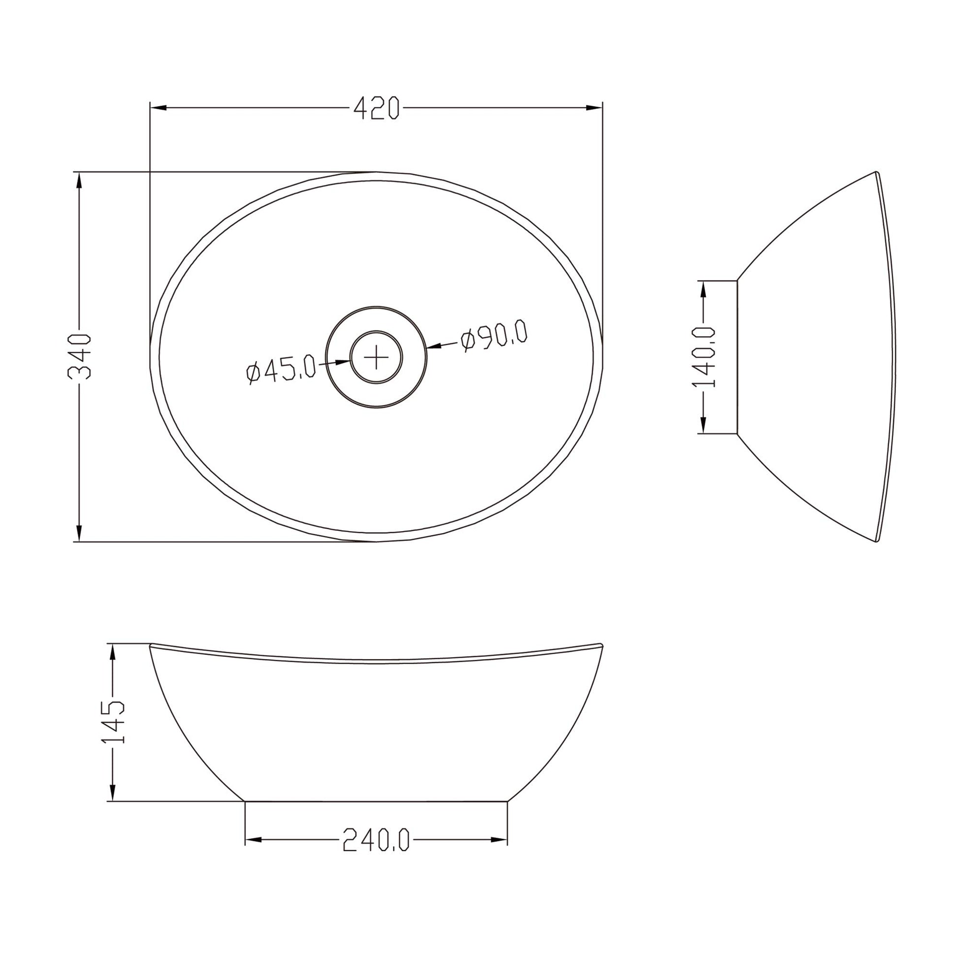 ["Design sink Brussels205 in black, Material: Ceramic, Shape: Oval","Width: 16.5 inches, Depth: 13.4 inches Height: 5.7 inches","Easy installation by fixing with drain and using silicone on the bottom edge","Feel free to pick up the item in person. Just ask us.","For alternative sinks from our range, simply click on MaiMai - Your sanitation expert"]