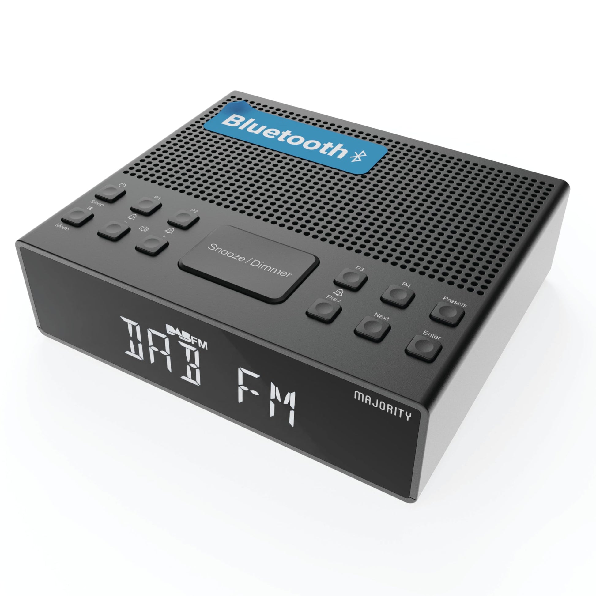 MAJORITY Knapwell | Bluetooth DAB, DAB+ radio alarm clock | Bedside radio with dual alarm, snooze function, large dimmable display | High-fidelity sound, USB charging | FM, headphone jack