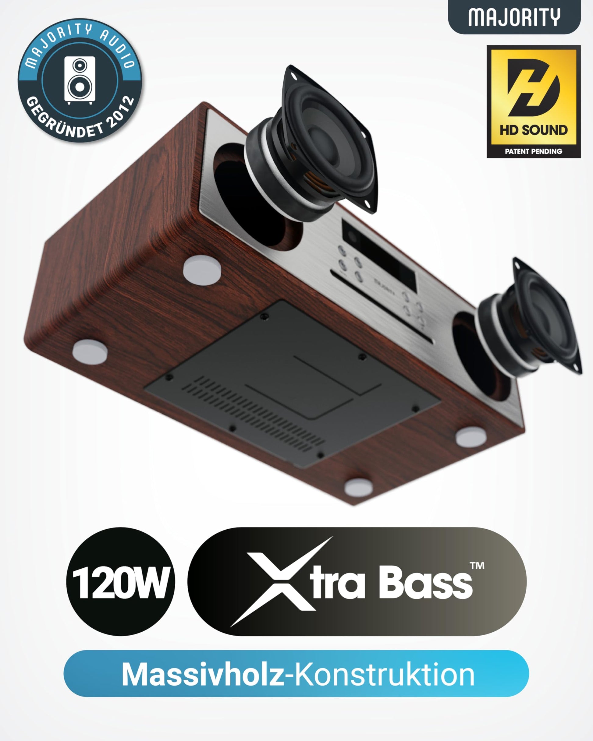 WHAT'S IN THE BOX: This package includes 1 Majority Oakington, 1 remote control, 1 RCA cable, 1 power adapter, and 1 user manual. Dimensions: 40 x 20 x 13 cm. Product weight: 1.2 kilograms."