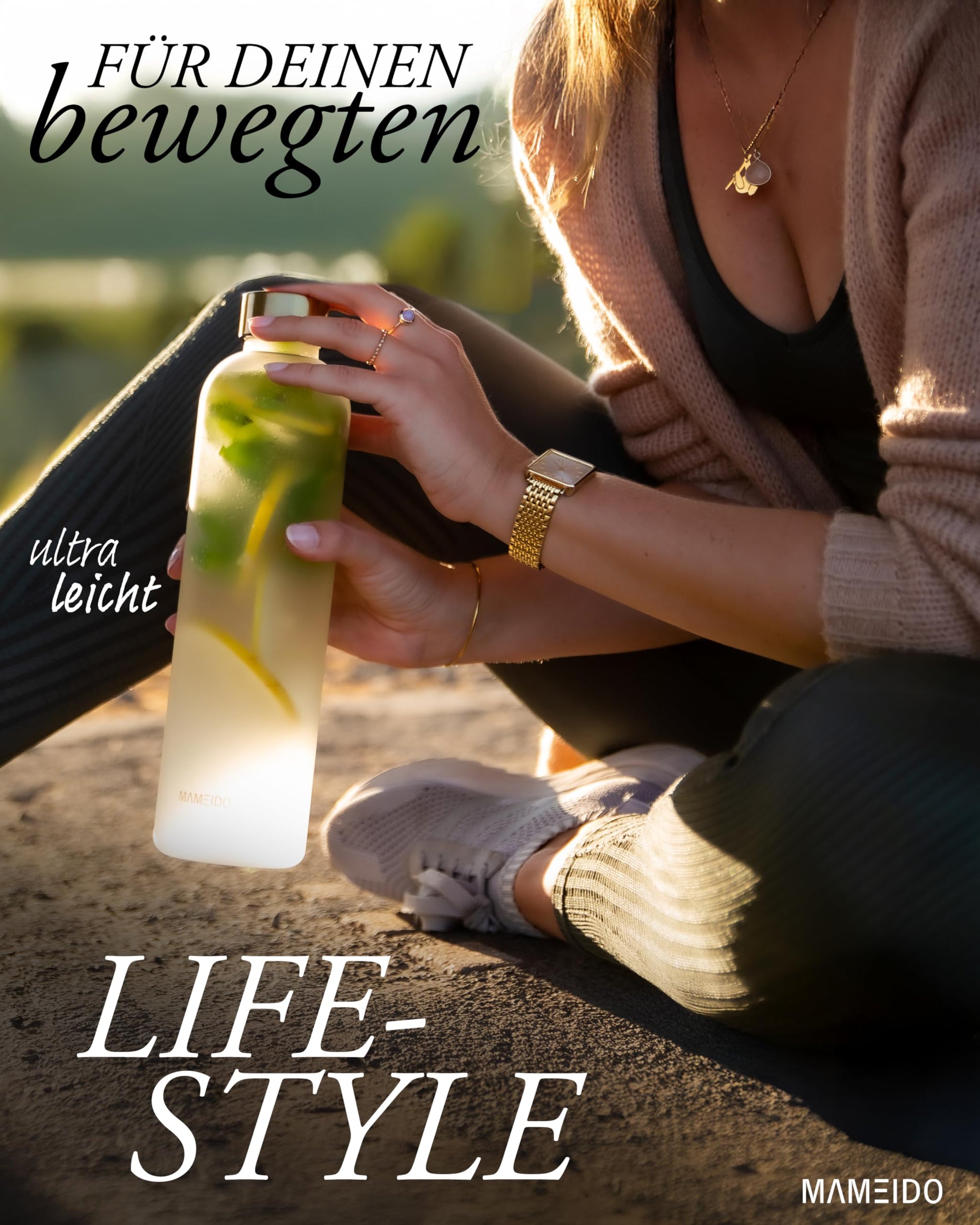 "Stylish & practical - Our water bottles impress with a sleek painted screw cap and stylish color tones. With the convenient wrist strap, you can always have them within easy reach - whether at the gym, office, or simply on the go.",