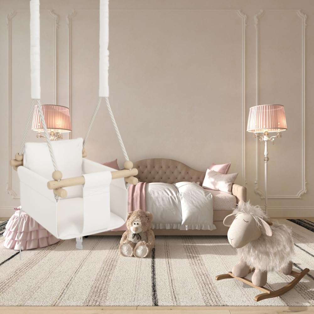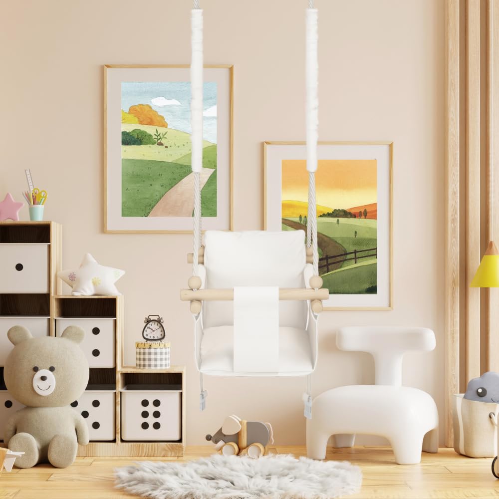 MAMOI® baby swing, indoor baby swing, wooden children's swing, wood swing for kids, door frame swings, swing, toddler swing for children's room aged 1 year and up.