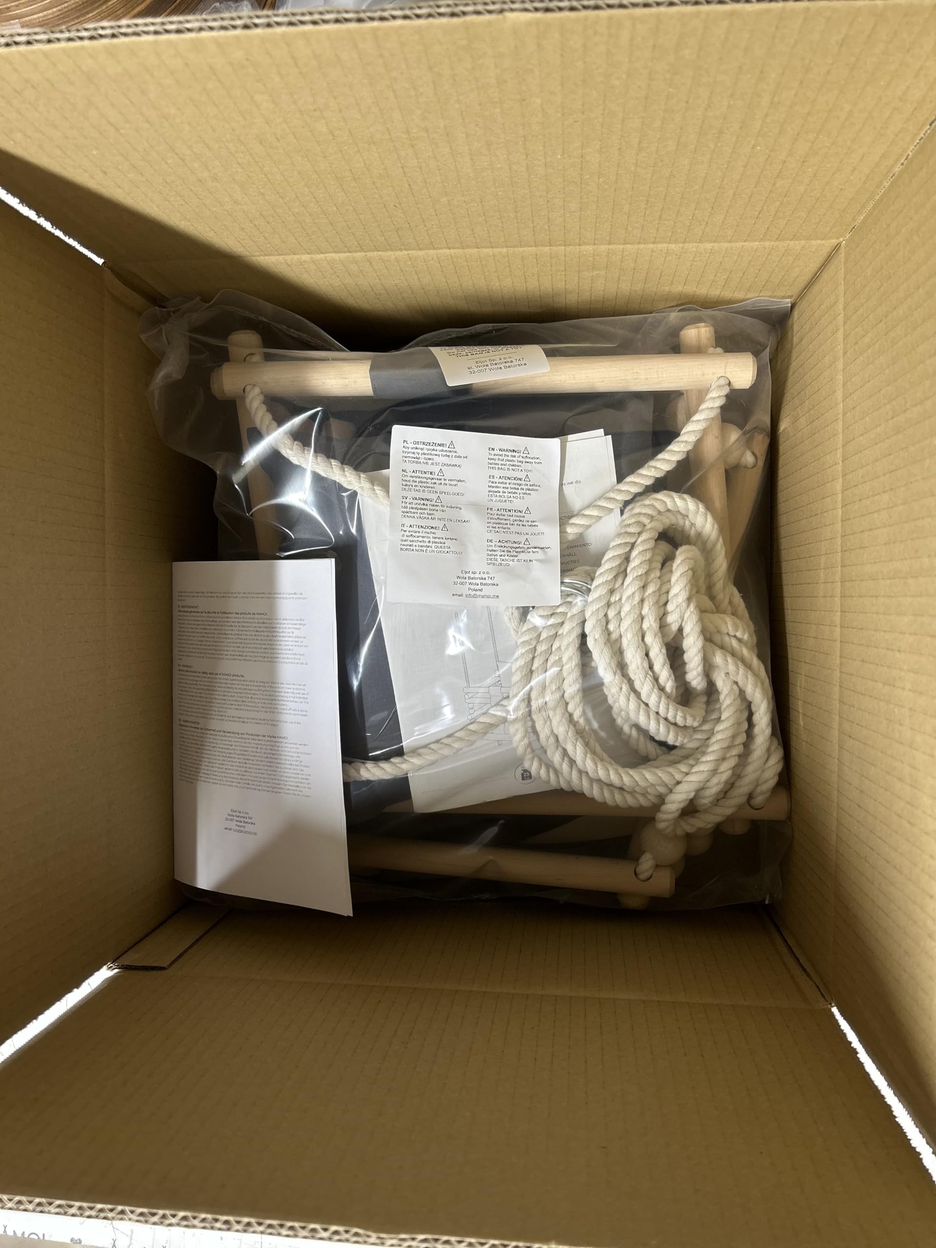 "The construction of the MAMOI door frame baby swing ensures special safety and durability. The maximum weight capacity of the indoor swing is 55 lbs. It is characterized by easy assembly and disassembly. The package contains durable ropes and metal rings. You only need to worry about hooks for mounting in concrete or wood.",