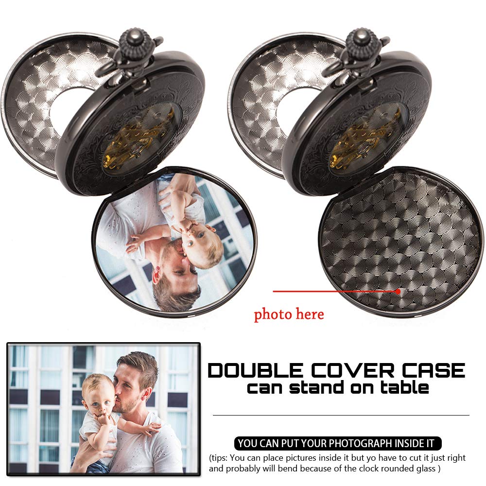 ManChDa® Classic Pocket Watch Retro Dial with Roman Numerals Steampunk Skeleton Mechanical Delicate Movement for Men Women with Chain (Black) + Gift Box