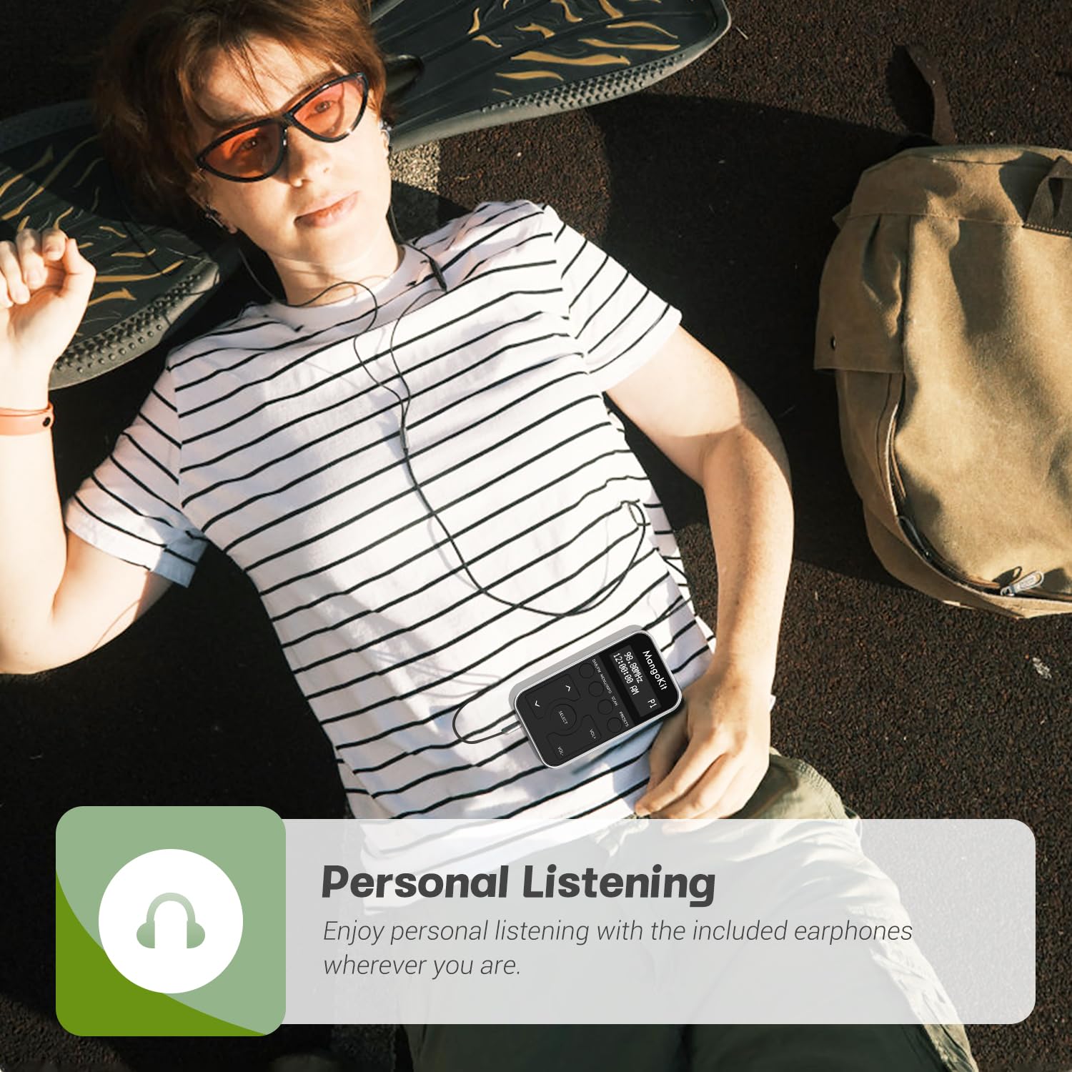 MangoKit MP1+ Portable Pocket DAB DAB+ Radio, Personal FM Radio with Headphones, Sports DAB Radio with Lockable Buttons, Rechargeable Battery, 20 Presets W/Display-Black & Silver.