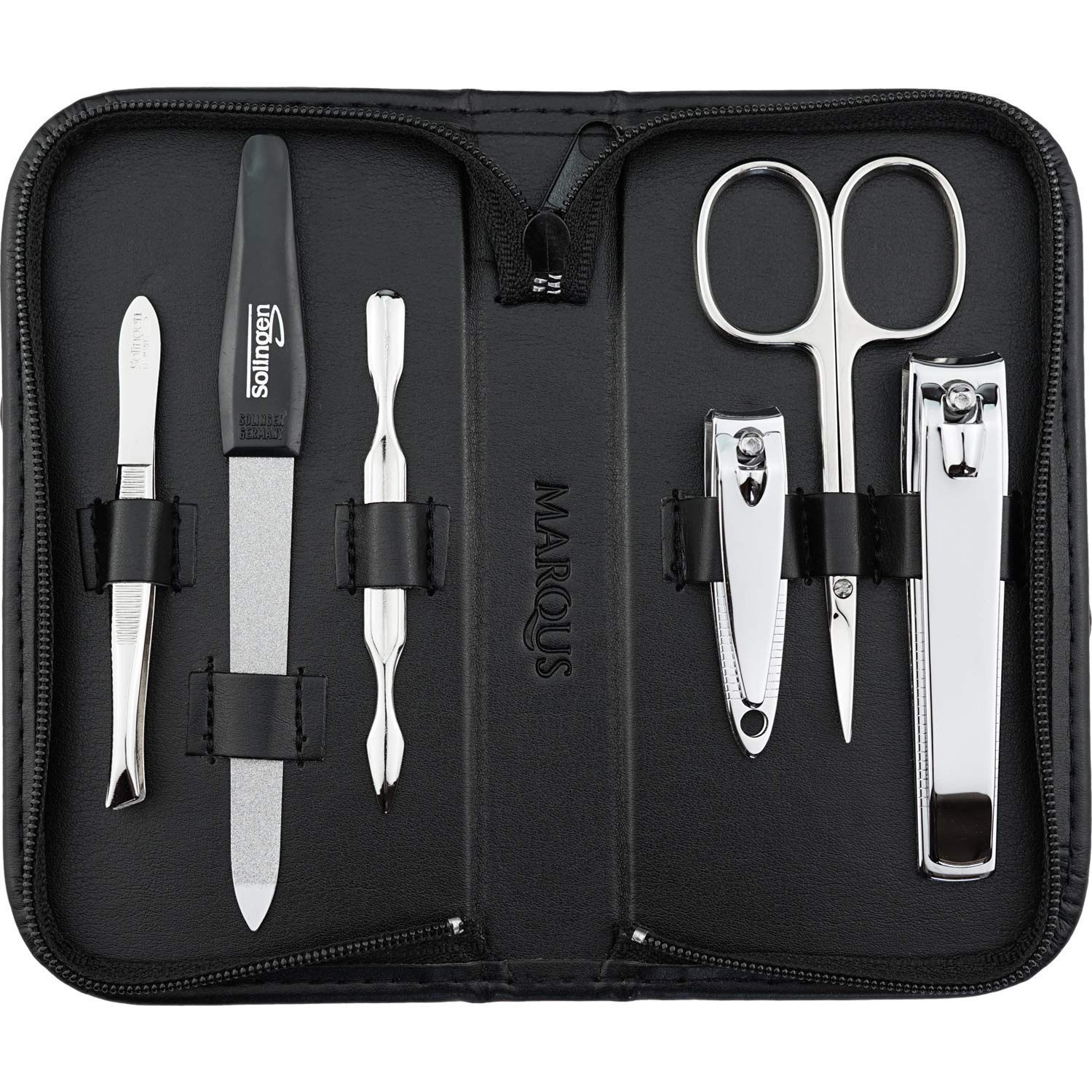 Manicure Set Solingen with top price/performance ratio - synthetic leather case handy and soft - 6-piece nail set for ladies and gentlemen marQus made of shiny nickel-plated polished steel.