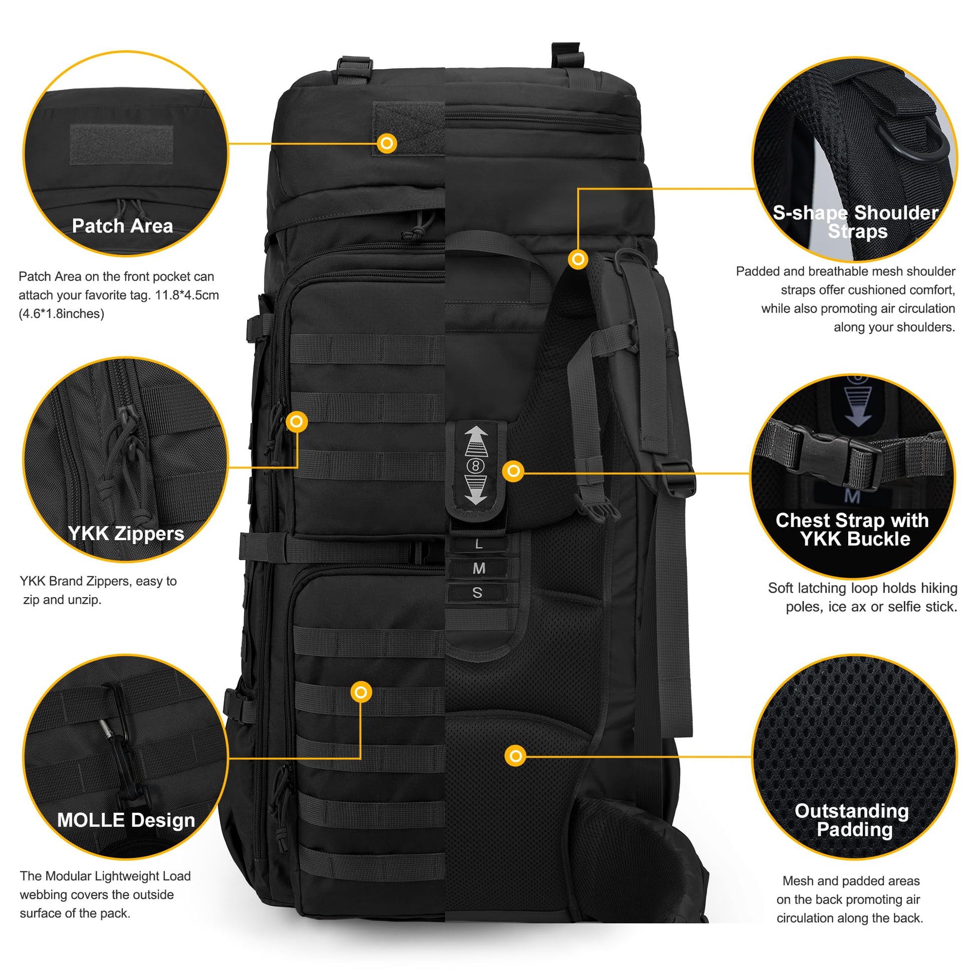 Mardingtop 75L Tactical Backpack with Rain Cover, MOLLE System Hiking Backpack Large Capacity Outdoor Backpack for Trekking, Hiking, and Camping.