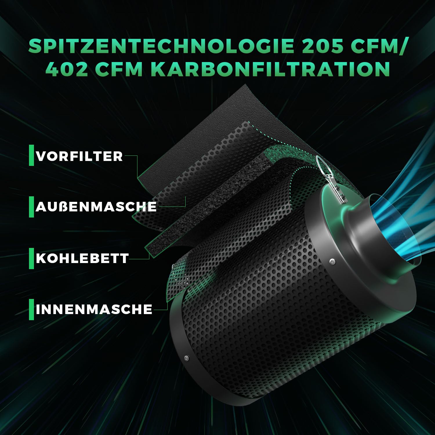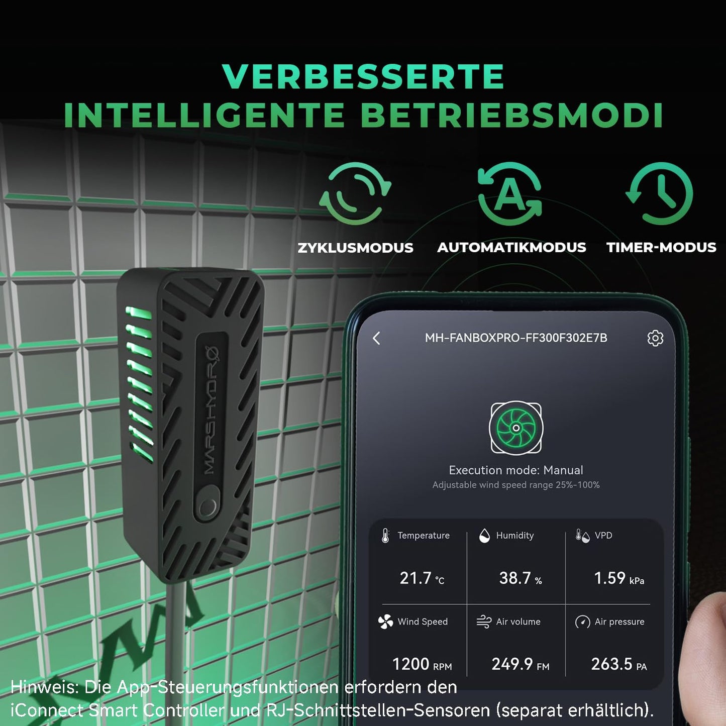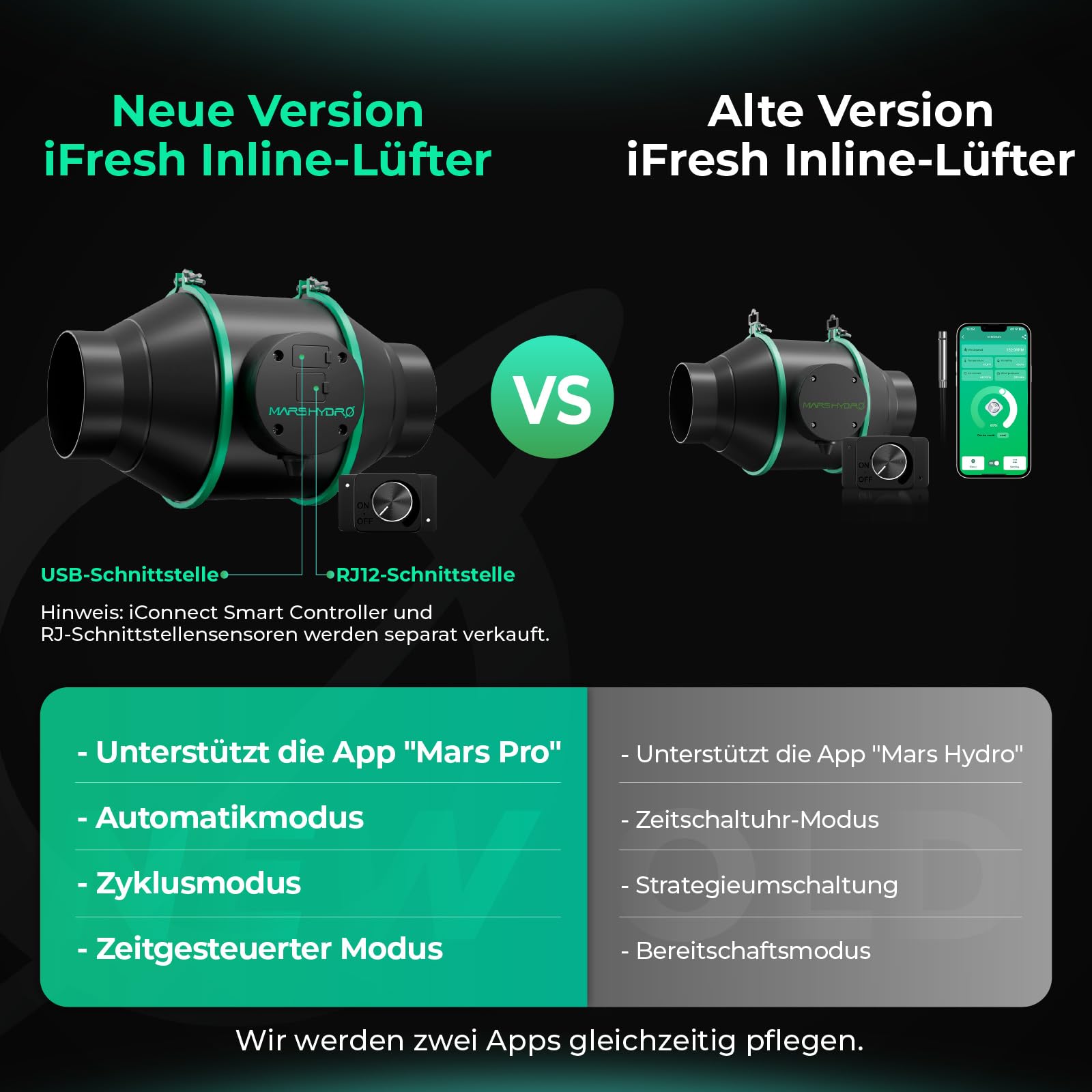 ["Intelligent ventilation for indoor grows: Download the MarsPRO APP to connect with the inline fan and access OTA remote control and smart features such as alarms, climate triggers, and loop timer with just a few clicks on your smartphone.","Powerful inline fan: The Mars Hydro iFresh 4-inch inline fan provides airflow of up to 205 CFM with low noise, thanks to its PWM-controlled EC motor and mixed-flow design.","Superior activated carbon - Made from imported Australian 1050+ virgin activated carbon, providing 100% filtered airflow for better absorption and efficient odor removal. Includes a machine-washable pre-filter cloth to prevent carbon residue.","Flex tube and clamps - Flexible tube made of high-quality double-layered aluminum foil to prevent tearing and extend lifespan. 360-degree arbitrary bending, smooth exhaust, easy to install. Includes 3 tube clamps.","Real-time environmental data monitor - The 100mm duct fan displays important climate data such as temperature and relative humidity in real-time on the app screen. Growers can easily read fan speed (RPM) and airflow (CFM) on the display during operation."]