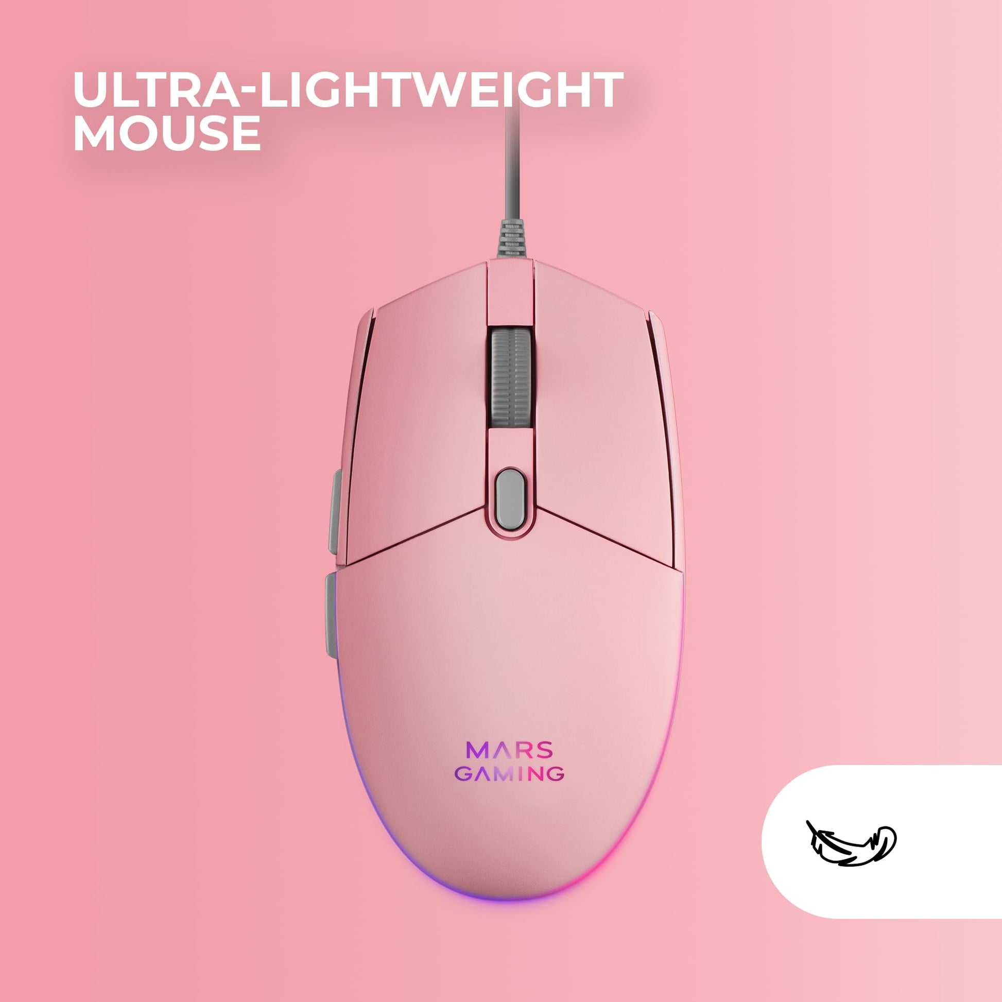 MARSGAMING MCP-RGB3, Gaming Keyboard Fixed RGB + Gaming Mouse RGB Flow 3200 DPI + Over-Ear RGB Headset + XXL Mousepad, Pink, Spanish Language.