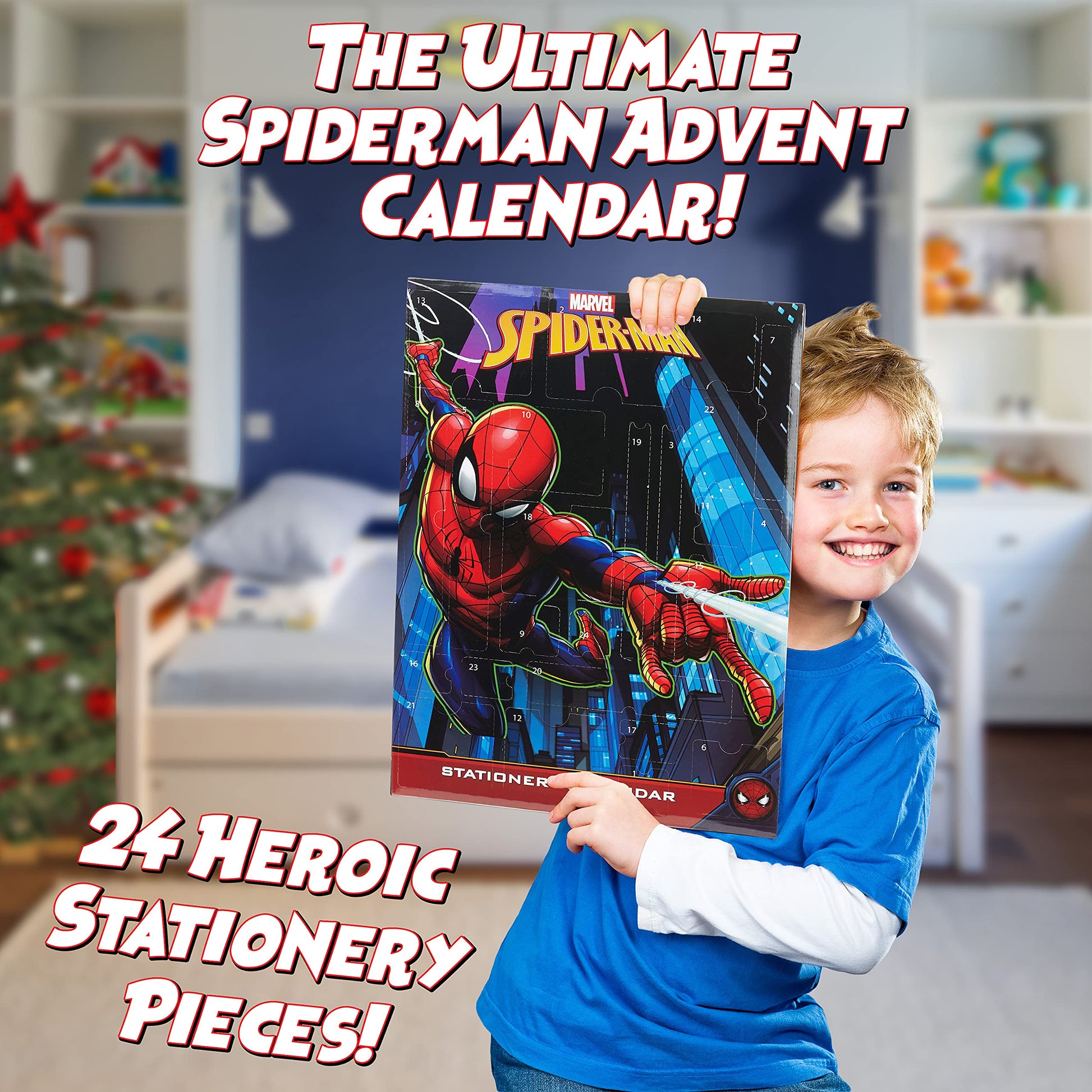 "Surprise a Marvel fan with this unique boys' Advent calendar filled with stationery, school supplies, stickers, and kids' toys"