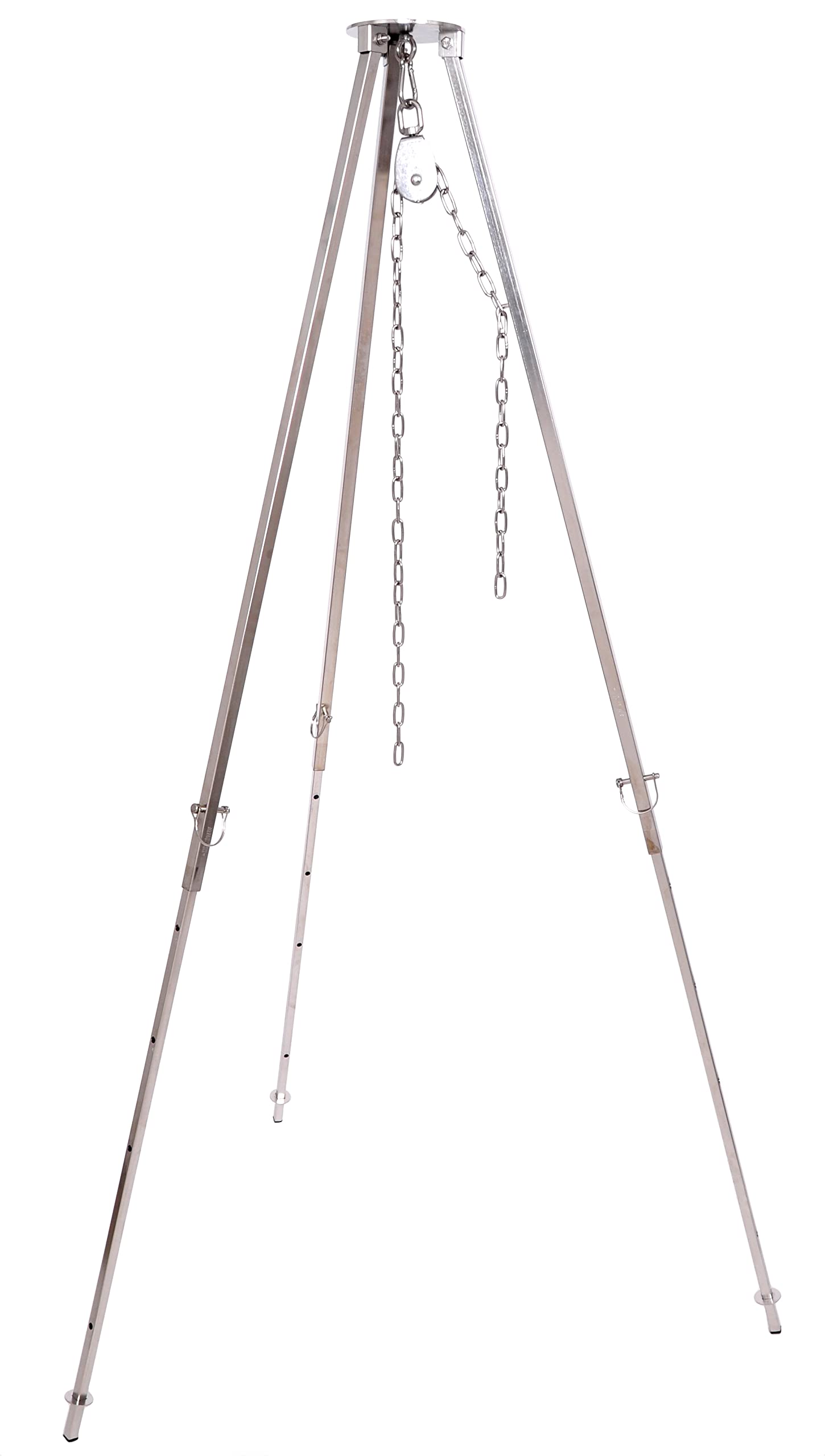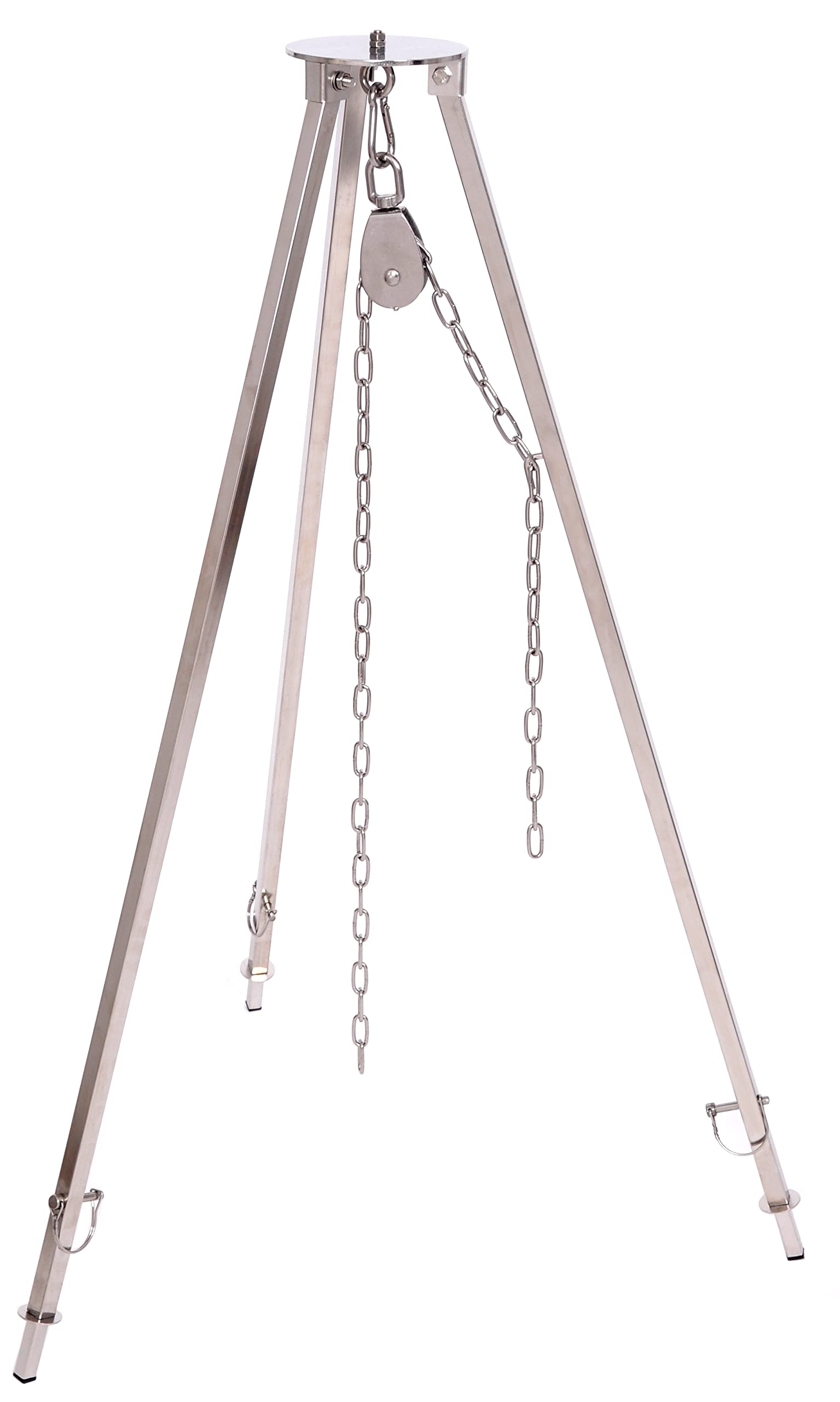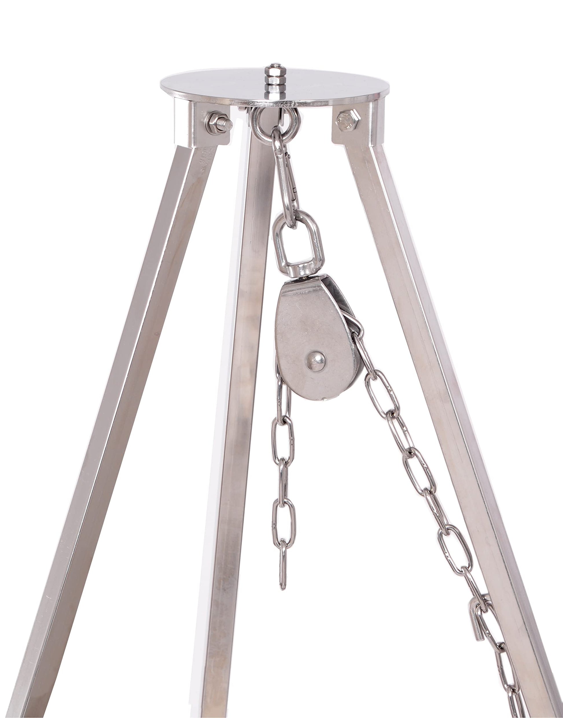 Massive tripod 2.00 m made of 304 stainless steel for swivel grill, goulash kettle, chain height adjustment, non-slip protection