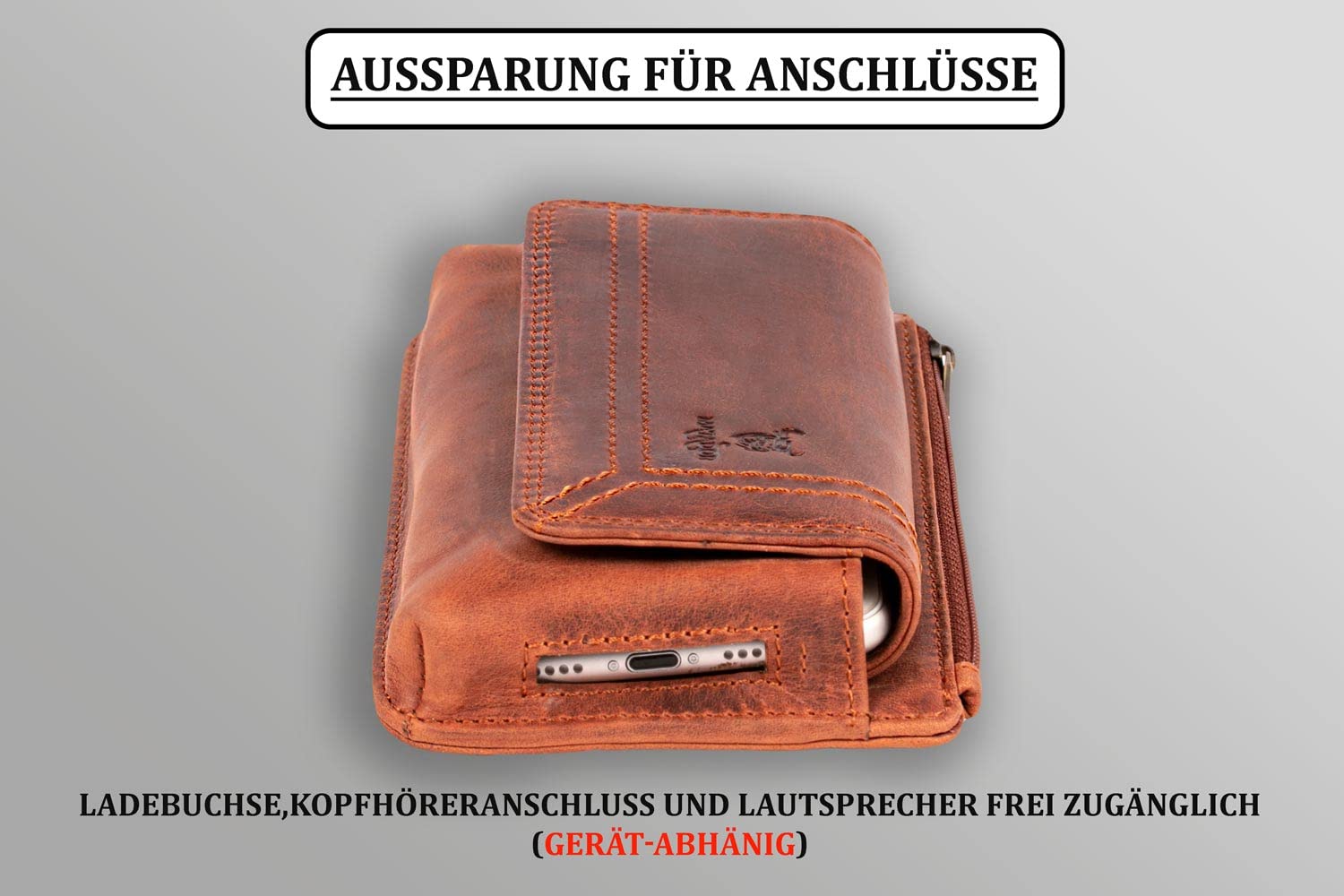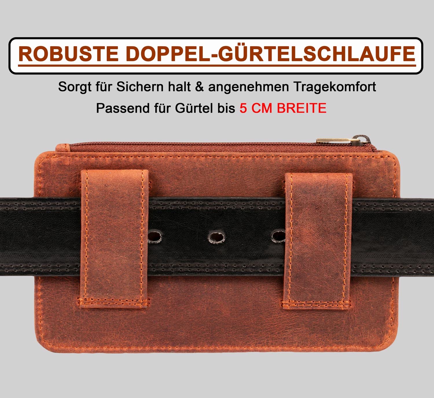 MATADOR 2in1 genuine leather phone case belt with zippered pocket #Brisbane, with elegant gift box and RFID protection, Elegant leather phone belt for smartphones up to 6.9 inches in Brown Vintage.