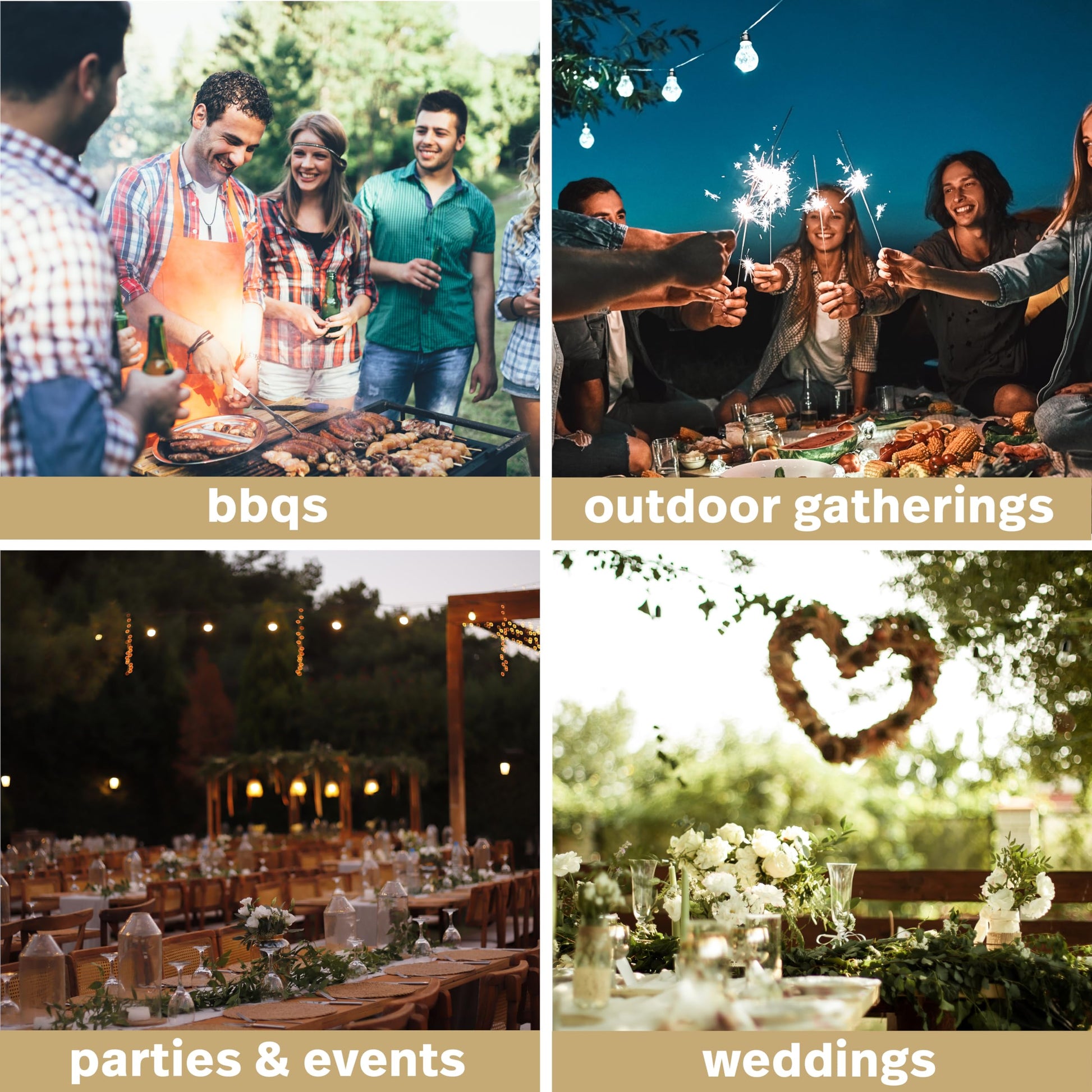 ["COMPLETE PARTY SOLUTION: This 150-piece premium plastic dinnerware set includes everything you need for an elegant and effortless gathering for up to 25 guests - including reusable plates, utensils, and cups in stylish white-gold design.","SHINING ELEGANCE: With 25 reusable spoons, 25 forks, and 25 knives with gold glitter effect, as well as 25 reusable hard plastic cups (285 ml / 10 oz), bring shine and style to any table setting.","ELEGANT AND STURDY: The durable hard plastic provides stability and a noble appearance. Our reusable dinnerware set can withstand the hustle and bustle of any event without losing elegance.","REUSABLE & DISHWASHER SAFE: All components of the set are designed for multiple uses and dishwasher safe. Hand washing is recommended for the plates to preserve the golden rim.","SUITABLE FOR MANY OCCASIONS: Ideal for weddings, birthdays, corporate events, baptisms, Christmas parties, New Year's parties, picnics, BBQs, or pool parties - this set will make your celebration unforgettable."]