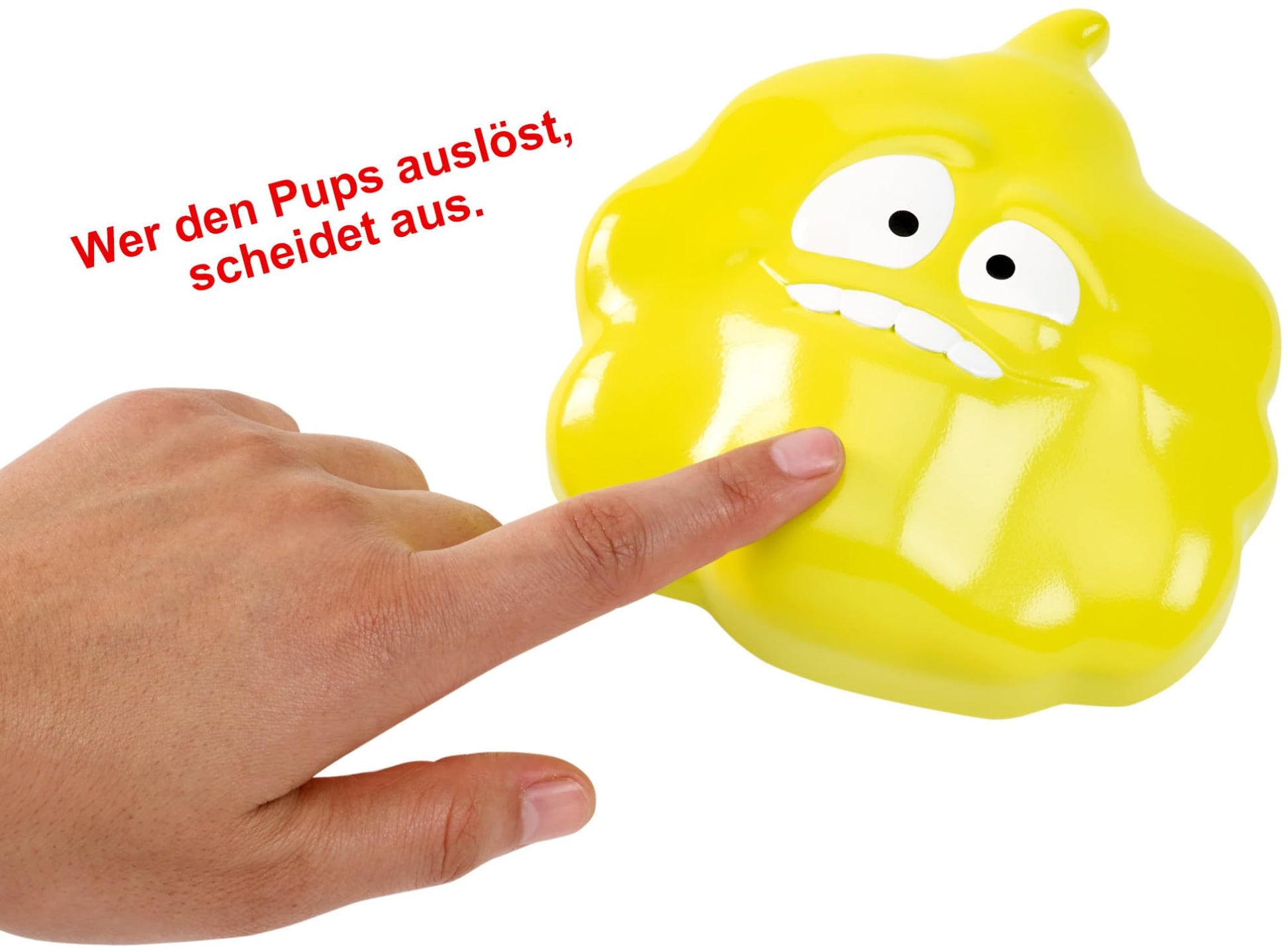"The players take turns playing Mister Pups cards with numbers and press the Mister Pups device according to the number on the card; if the device farts while a player is taking their turn, they are out. Skip and Reverse cards add variety to the game. The last player standing after all others have been eliminated by a fart from the Mister Pups device wins the game. Includes electronic Mister Pups device and a set of Mister Pups cards."