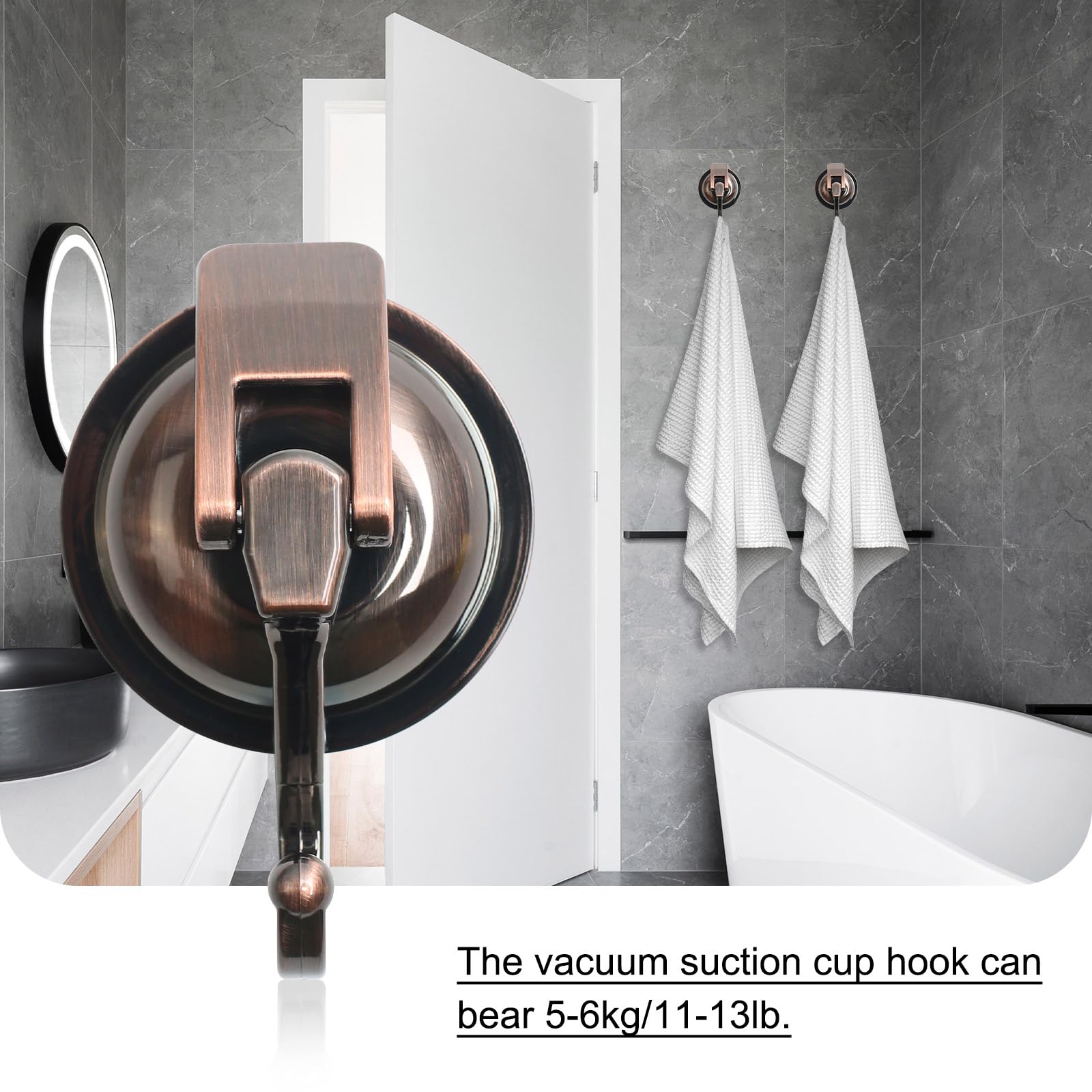 MaxEarn 6 piece Vacuum Suction Cup Hooks, Copper-Colored Extra Strong Suction Hooks, No Drilling Suction Hooks Wall Hooks Load-Bearing 5kg for Bathroom Kitchen Smooth Window Wall Glass