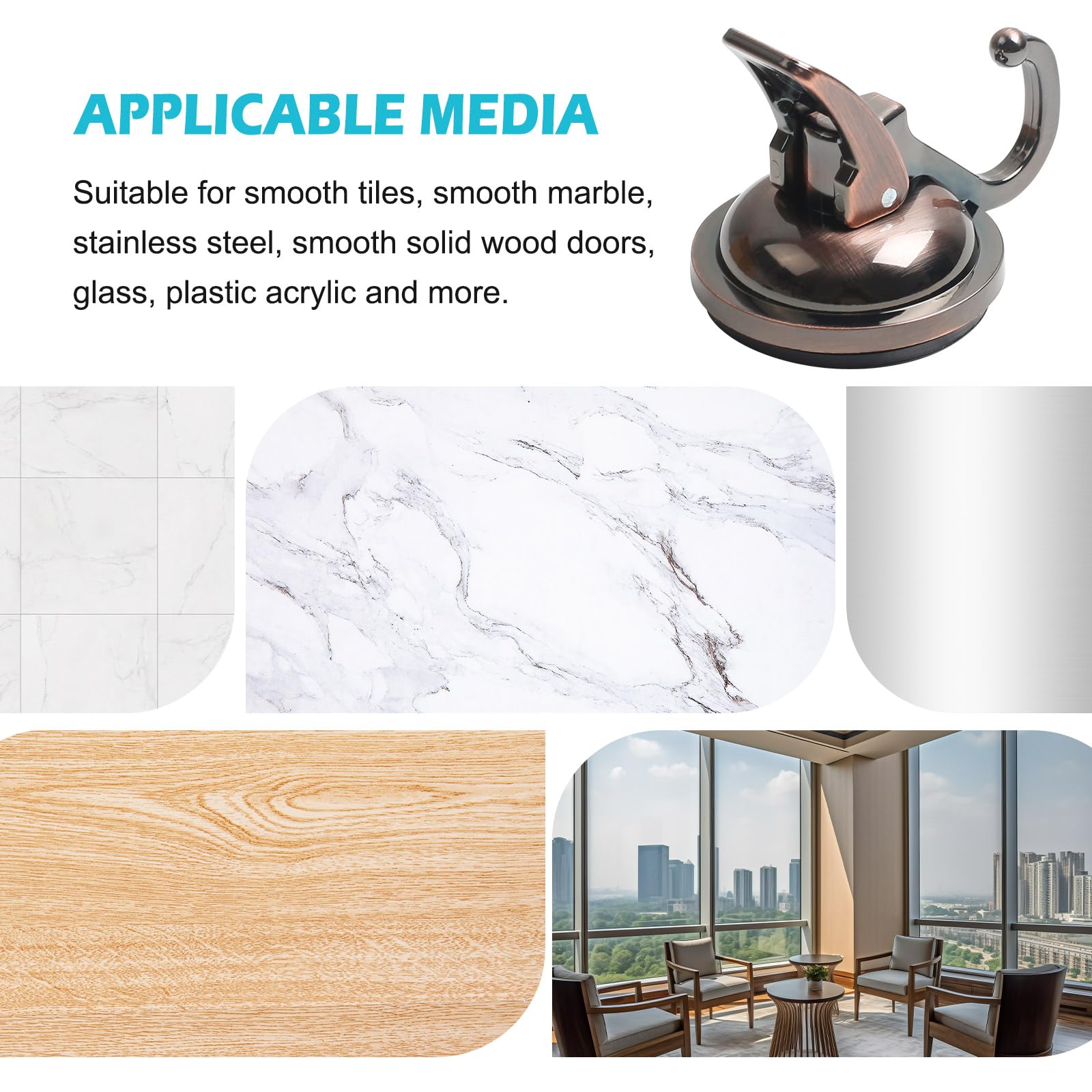 ["Packungsinhalt: You will receive 6 large copper colored suction cup hooks. The hook diameter is 60 mm (2.36 inches) and the total length is 85 mm (3.32 inches). Perfect for smooth kitchen and bathroom walls or glass.","High-Quality Materials: The suction cup hook is made of imported TPU material and durable plastic from Germany, which is strong and long-lasting. The surface is galvanized, waterproof, moisture-resistant, corrosion-resistant, and rustproof, ideal for smooth kitchen and bathroom walls or glass.","Strong Load Capacity: Solid vacuum suction hook, super large bottom diameter, double adsorption, firm and stable, not easy to fall off, long service life. Strong suction power, each suction cup can hold 5 kg weight.","Easy to Use: No drilling, no glue, no marks on the wall, easy to install. Can be reused. Small size, easy to carry.","Wide Application: The wall-mounted suction cup is suitable for various smooth surfaces such as marble, steel, tiles, glass, and other smooth indoor surfaces. (Note: Suction cups cannot be attached to rough surfaces.) Can be used in the kitchen, bathroom, hallway for hanging clothes, towels, keys, kitchen utensils, etc."]