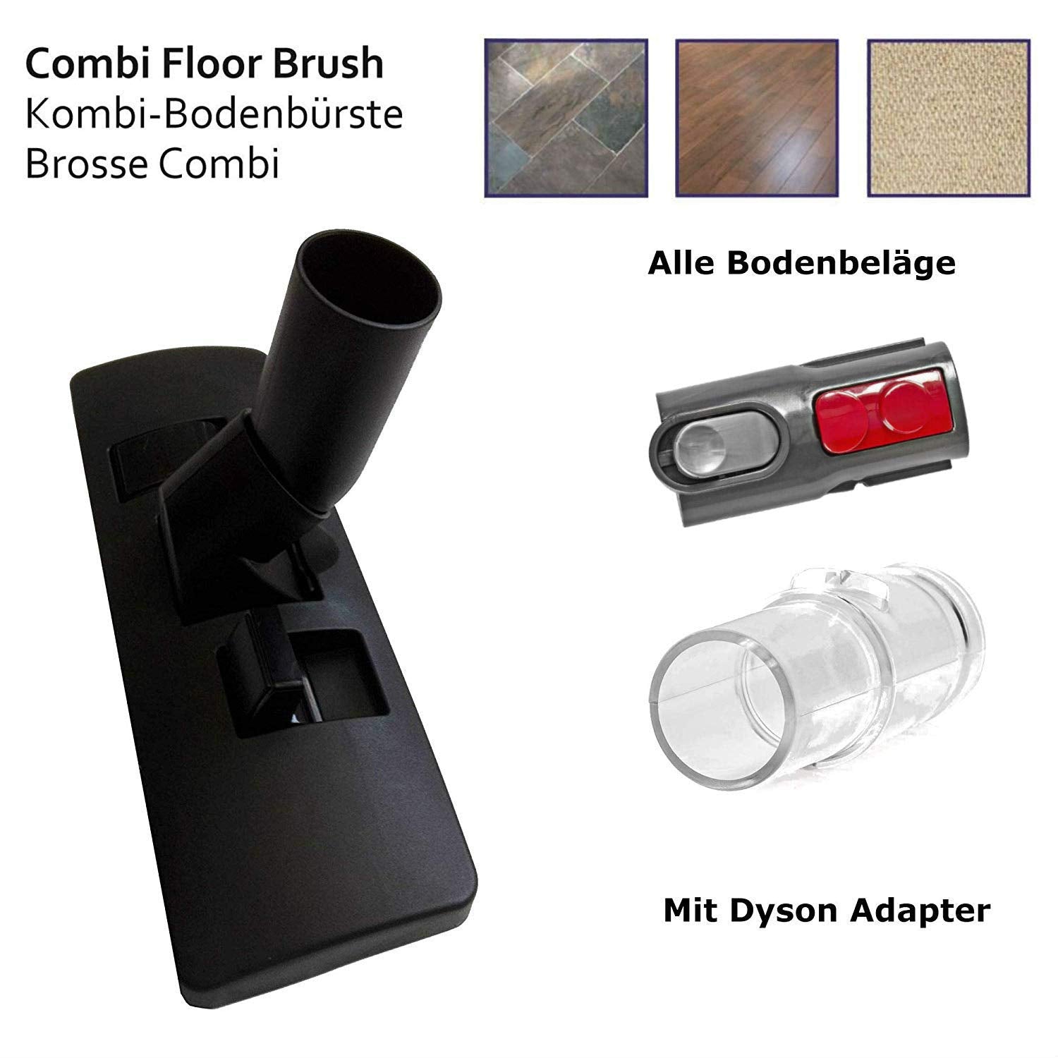 ["This combination nozzle ensures easy cleaning of your carpet and hardwood floors without scratches or other damages","For example, suitable for Dyson upright vacuum cleaners compatible with Dyson V6 with Quick Release adapter for V7, V8, V10, V11, SV10, SV11","✔ 2 foldable hair strips to protect the surface from scratches and other damages","✔ Perfect for hardwood floors ✔ Lightweight","✔ Suitable for carpets / tiles / parquet / laminate / etc. ✔ Color Black ✔ Material Plastic"]