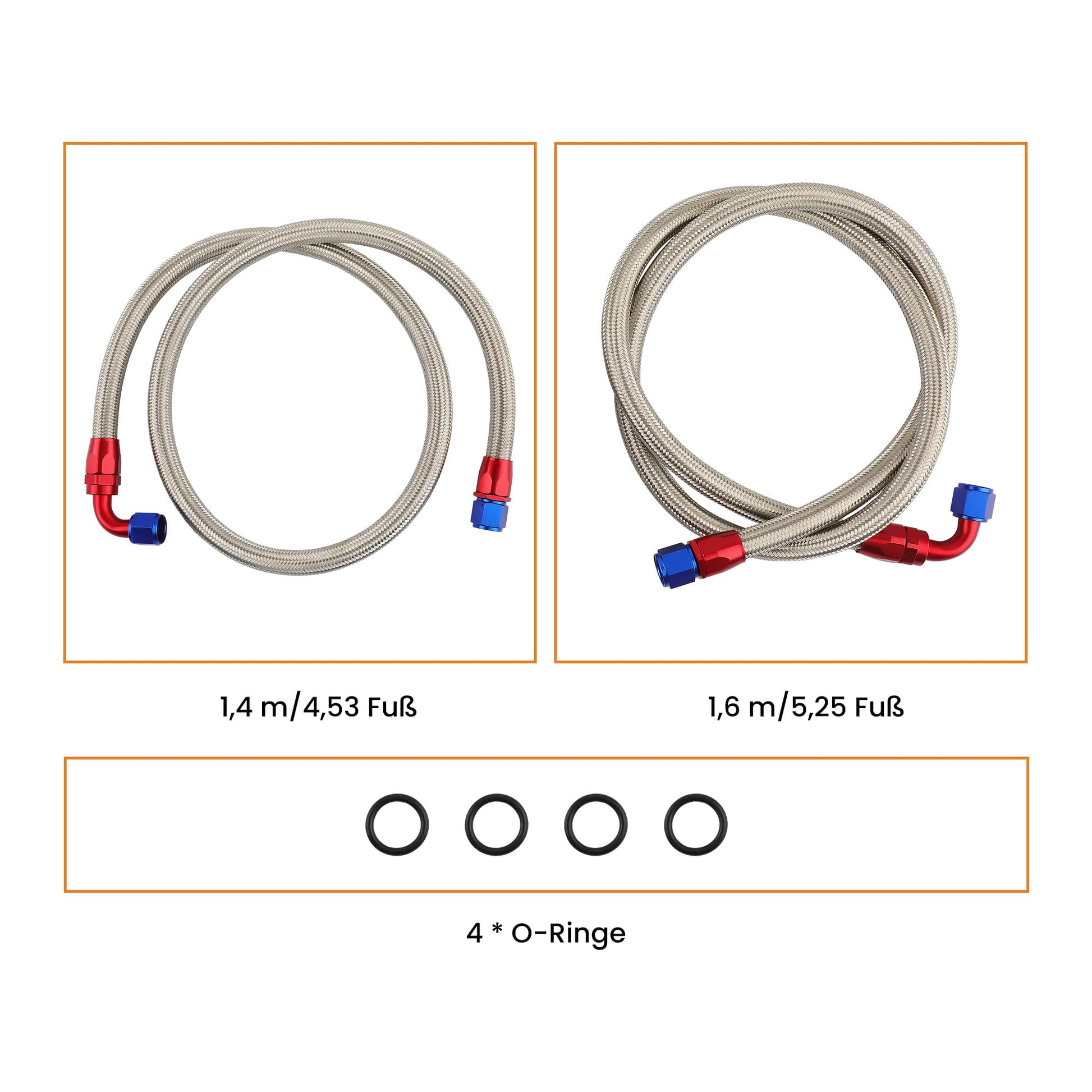 - "Scope of delivery: 1 oil cooler; 2 steel flex lines (2 x 1 meter); 1 adapter flange (possibly in Blue instead of Silver depending on availability); 1 mounting adapter / thread adapter (¾" 16 UNF)"