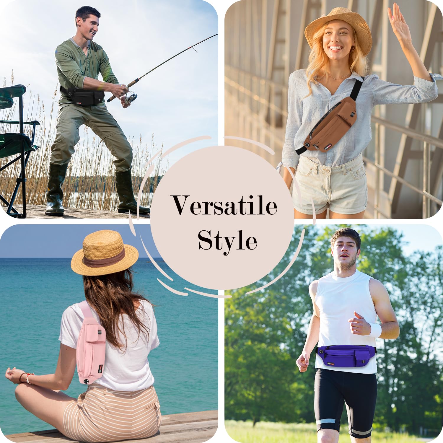 "▶ Versatile Style Waist Bag, Adjustable Belt - Since the comfortable long strap is adjustable to fit most waist sizes (32"-50"), there are many ways to wear this waist bag - you can wear it in front of the waist, as a waist bag, at the back of the hip, diagonally across the chest, or over the shoulder.",