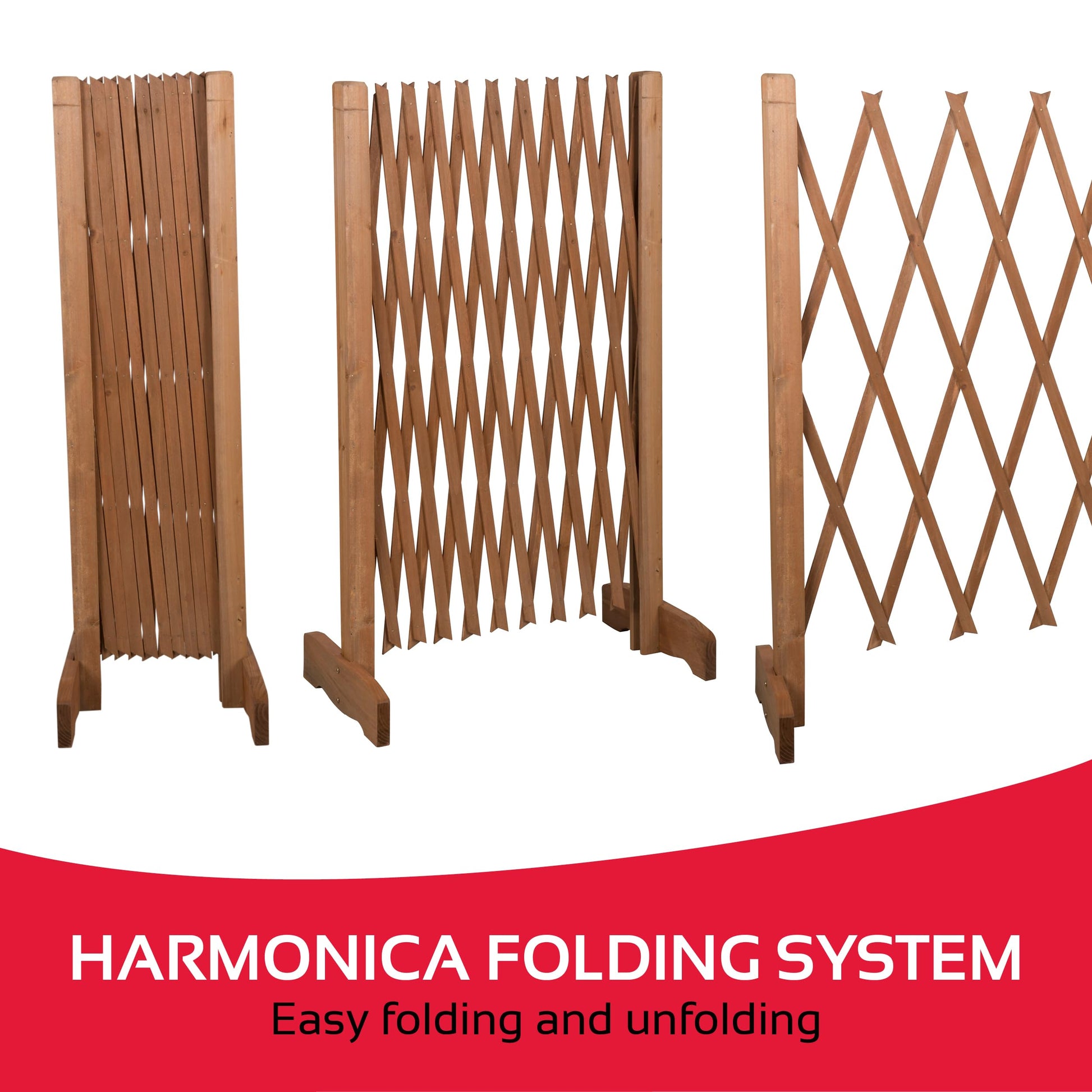 ["DOG FENCE BARRIER - This wooden slat gate forms a clear barrier for your dog. This allows the dog to be separated from a room so that he cannot enter the room.", "FENCE FOR DOORWAY - You place the maxxpro dog fence e.g. in the doorway, near the trap or the porch. Since the fence is adjustable, it can be mounted in different locations.", "NO STEP UP GARDEN FENCE - It prevents your dog from running outside, climbing onto the porch, or entering an area where he is not allowed. The fence keeps the dog where you want him.", "INDOOR AND OUTDOOR GATE - This dog fence can be used both indoors and outdoors. For example, to shield the patio.", "FLEXIBLE FENCE - Thanks to its accordion shape, the fence is expandable from 30-117 cm. This makes it practically fit any opening. Easy installation at the desired location."]