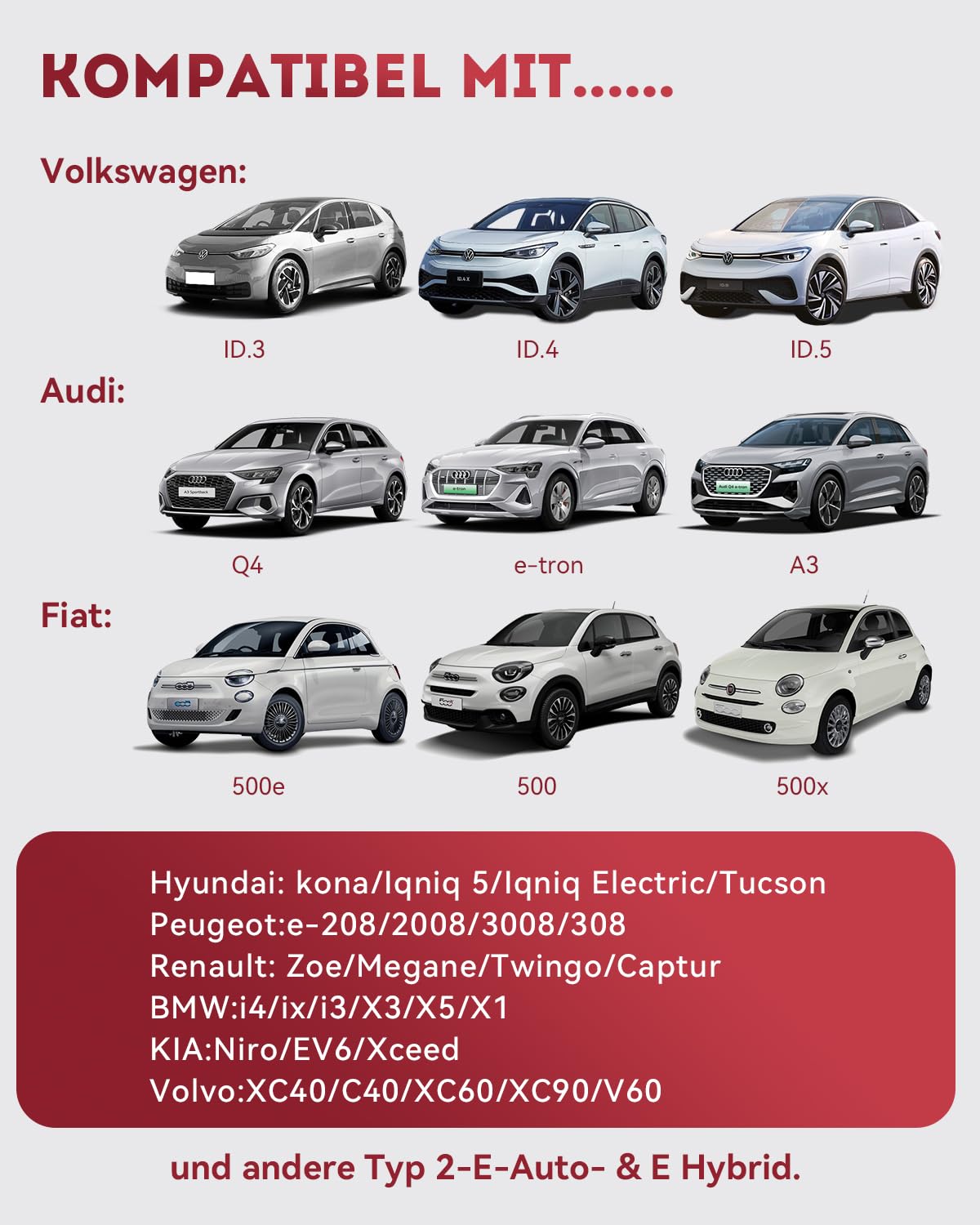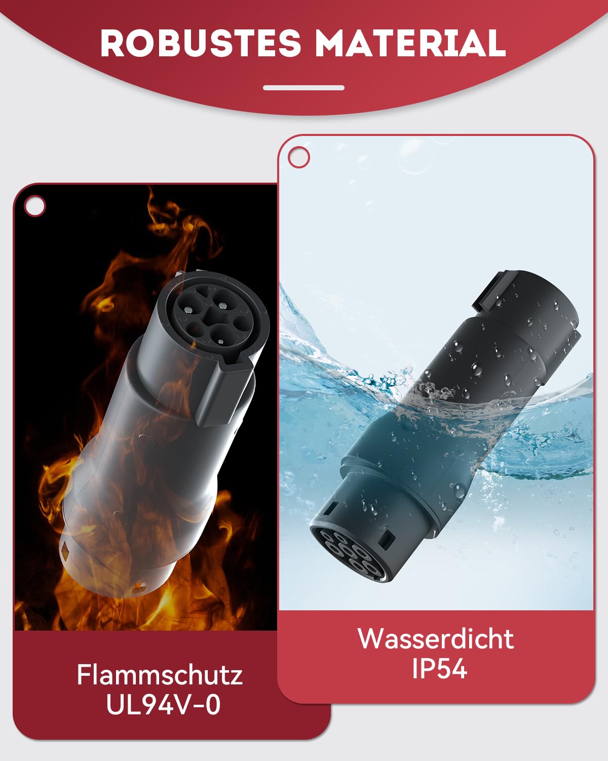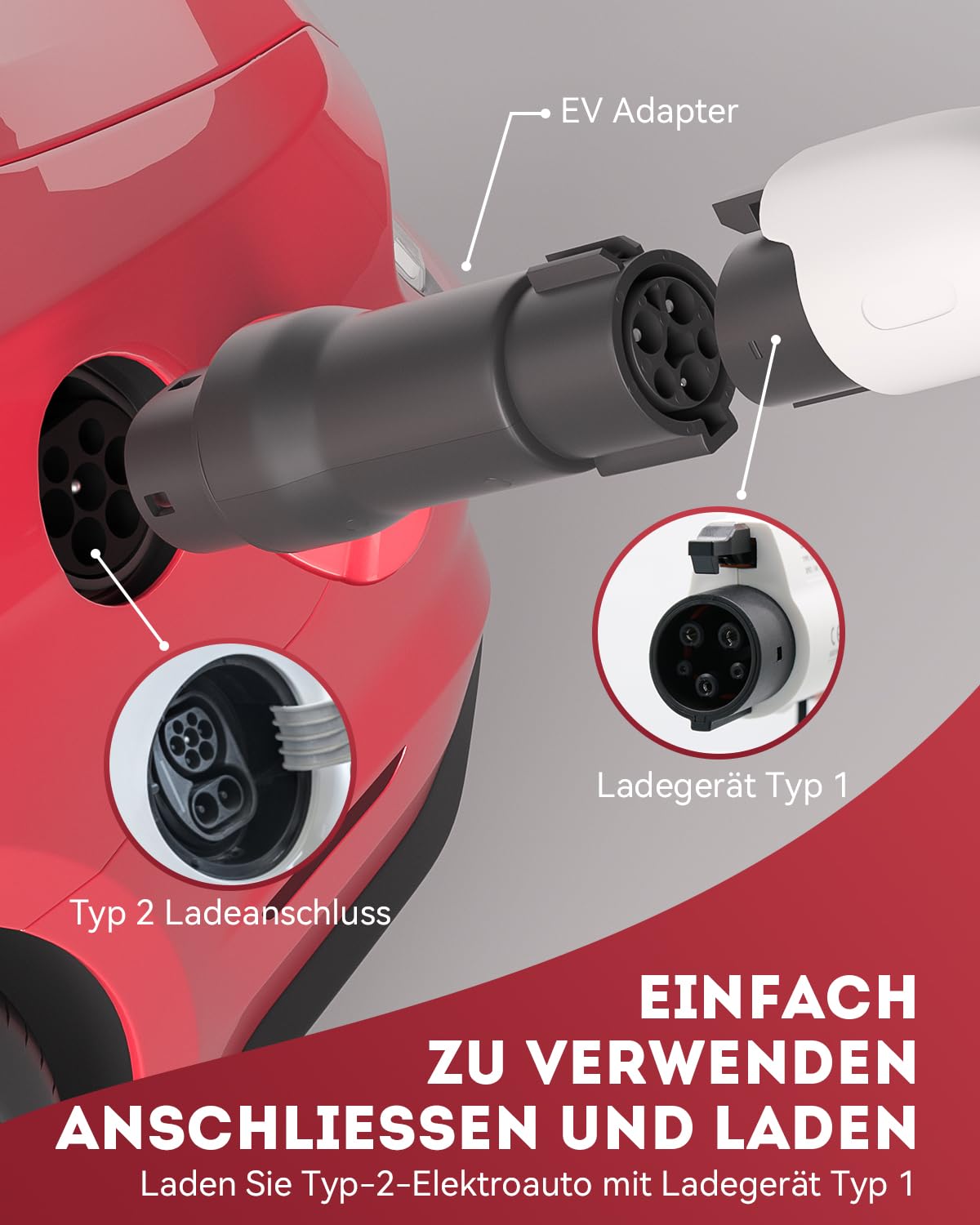["【PORTABLE】The adapter is very lightweight and easy to carry. It weighs only 1 lb and allows the American charging cable (Type 1 SAE J1772) to connect to European cars (Type 2 IEC 62196).","【USAGE】The adapter has two sides. First, plug the corresponding end of the adapter into your Type 2 electric car, then plug the Type 1 charging cable into the adapter to charge the car. The adapter is compatible with 16Amp and 32Amp.","【SAFETY】This product is CE certified and has IP54 protection class. It can operate under conditions from -22°F to 122°F and is thermoplastic (UL94 V-0 flame retardant), flame-resistant, pressure-resistant, abrasion-resistant, and rain-resistant.","【MATERIAL】Thanks to the silver-plated copper alloy contacts, the electricity can flow better. The high-quality external plastic ensures a longer product lifespan, the J1772 standard connection fits well, and the adapter does not easily come off. It is easy to use.","【COMPATIBILITY】The adapter is compatible with many Type 2 EVs, including E-208, 500e, Zoe, ID.4, ID.5, Model S/X/Y/3, and many others (Note: Not compatible with Nacs Model S/X/Y/3)."]