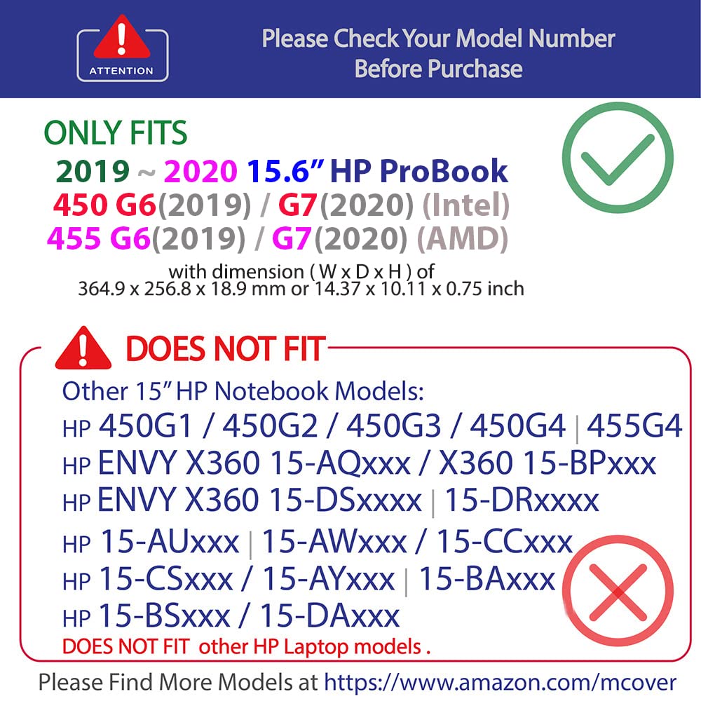 "Designed to perfectly fit the 2019~2020 15.6 inch HP ProBook 450 G6 / G7, ProBook 455 G6 / G7 series laptops measuring 36.50 x 25.68 x 1.91 cm (14.37 x 10.11 x 0.75 inches)",