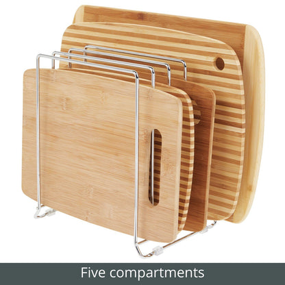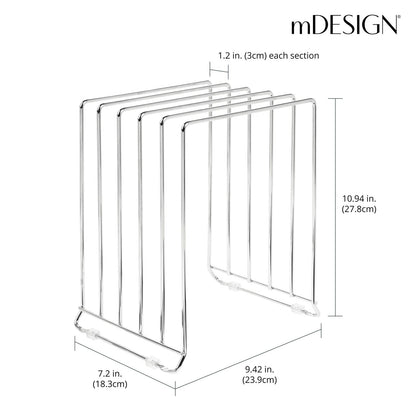 mDesign metal dish rack for baking trays - compact pot lid holder for kitchen cabinet - space-saving stand for cookware - silver-colored.