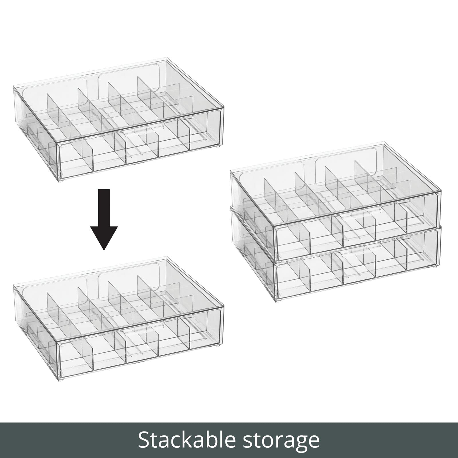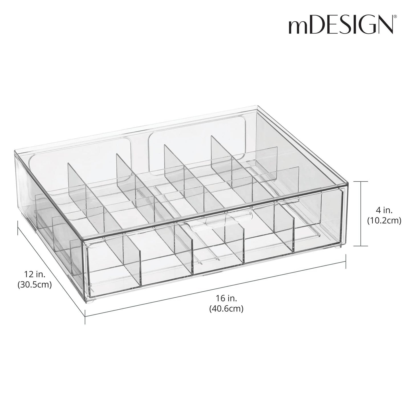 mDesign storage box for tea bags, coffee pods, sugar, etc. - compact plastic tea box with 20 compartments - kitchen organizer with a drawer - 2-pack - transparent