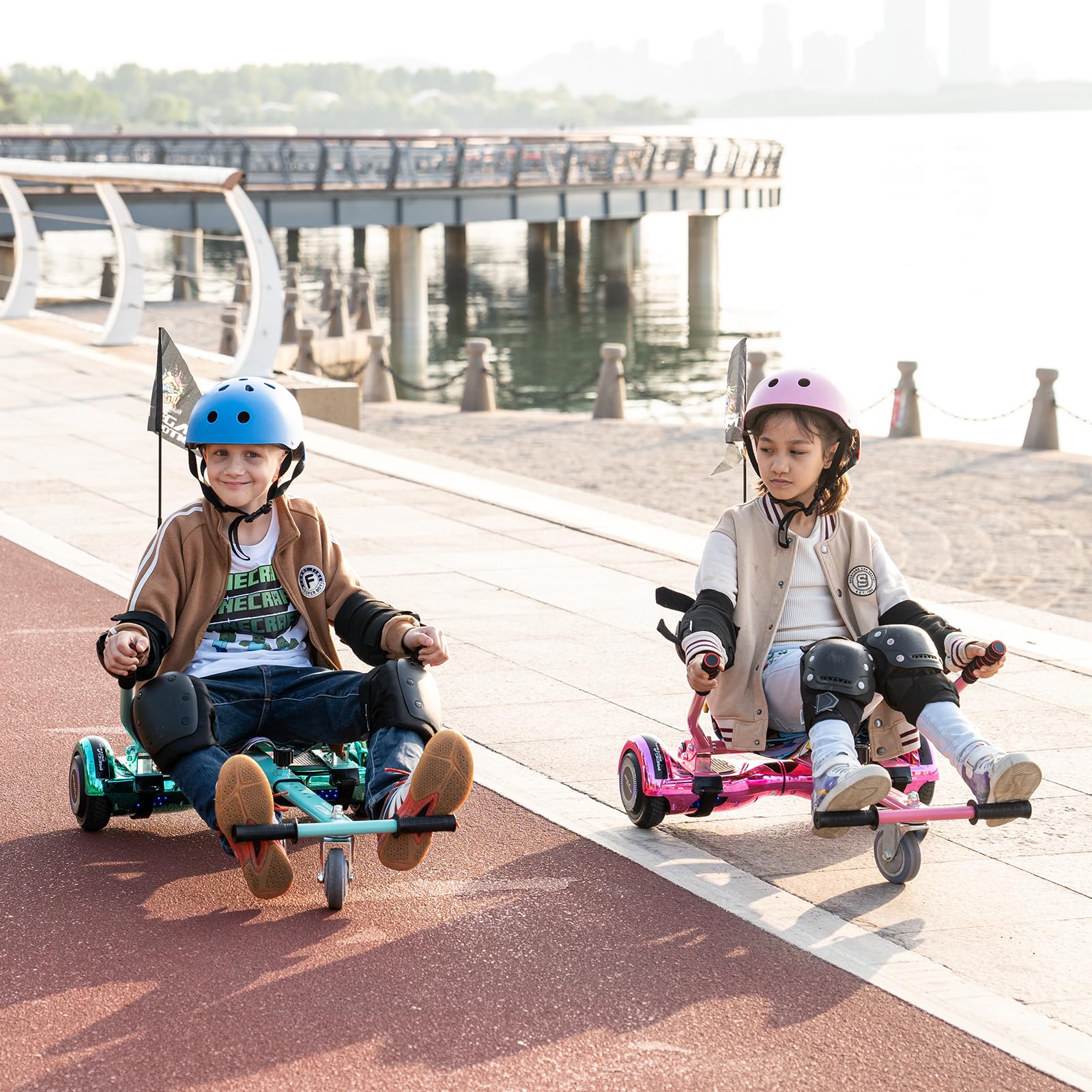 【Hoverkart】Turn the telescopic knob to adjust the length of the hoverkart frame, suitable for children of different sizes. Thanks to the hoverkart, you can comfortably operate the hoverboard while seated.