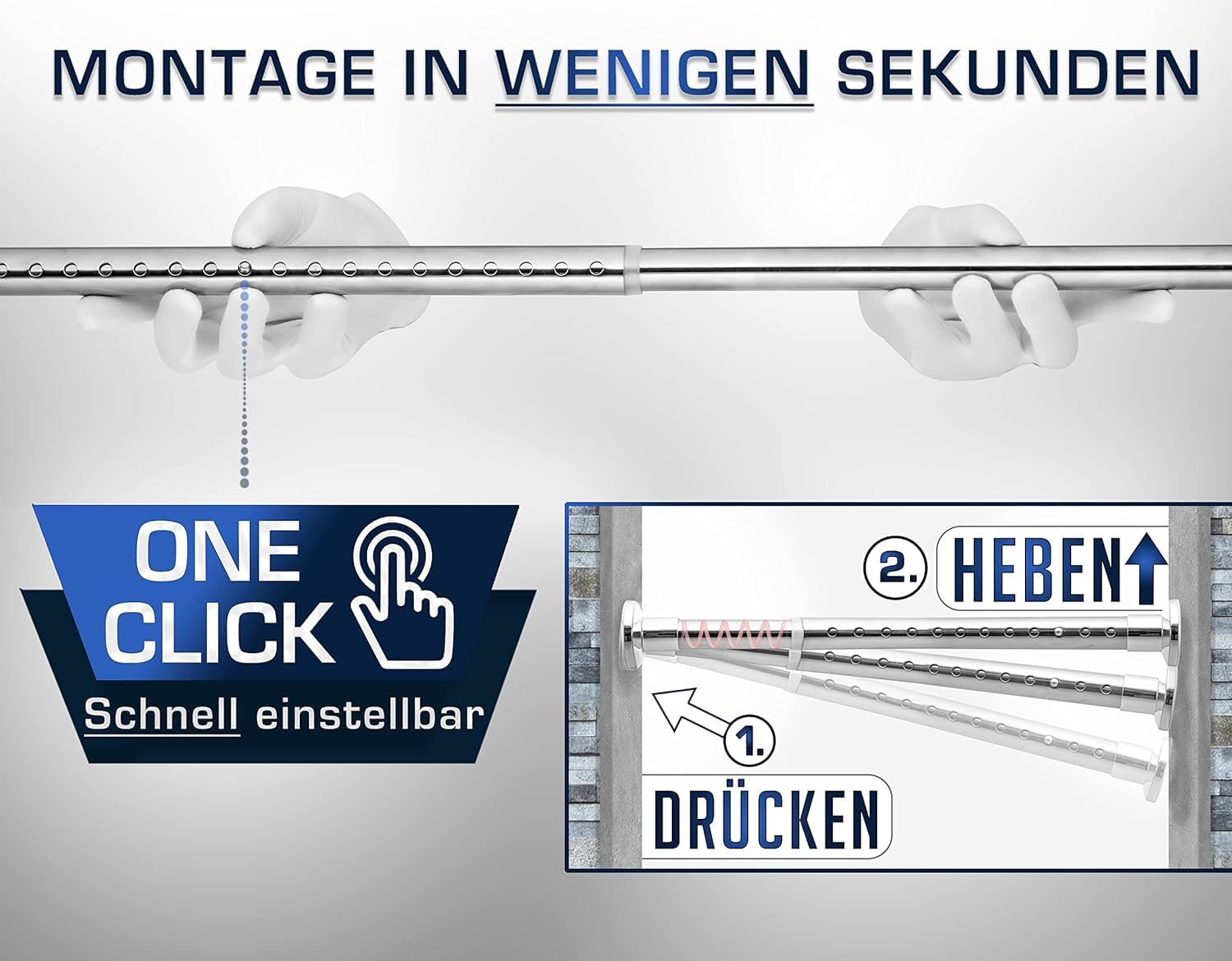 ["πΈ π¦π’ππ’π₯π§πππ πππ‘π₯ππππ§π¨π‘π & π¨π‘ππ©ππ₯π¦ππππ π£ππ¦π¦πππ§: Turn any room into minutes with this Adjustable Spring Tension Rod - no drilling required, no tools needed. The telescoping curtain rod seamlessly adjusts to your desired length, ensuring a perfect fit anywhere from the kitchen to the bathroom. Experience the simplicity of a no-drill curtain rod for quick, damage-free updates.","πΈ ππ¨π©ππ₯πΓπ¦π¦ππππππ§ ππ‘ πππππ πππ‘π§ππ ππ§ππ₯: Constructed from sturdy steel and featuring a powerful spring, this rod carries significant weight without slipping. Trust in the durable strength of our tension rod for all your heavy curtains, from kitchen valances to living room decorations. Ideal for clamping and providing a secure hold without drilling.","πΈ ππ¨π¦πππππππ§π π¦π§Γπ₯ππ: Our no-drill curtain rod is not only practical but also aesthetically pleasing. Coated with high-quality, rust-resistant material, it offers both elegance and durability and enhances the interior of your home with flawless style.","πΈ π¦π§ππππππ§Γπ§ π§π₯ππππ§ ππ‘π‘π’π©ππ§ππ’π‘: Stay secure with Anti-Slip Mats 2.0 and superior construction that ensures your curtain stays in place on any surface. Our telescopic rod integrates cutting-edge materials for maximum functionality and durability.","π€ π¨ππ§ππ ππ§ππ©π π¦πππππ₯ππππ§: Enjoy the confidence of a lifetime warranty and a 3-month return guarantee. Our aim is to ensure your complete satisfaction.","π©πͺ πππ¨π§π¦ππππ₯ π¦π¨π£π£π’π₯π§: Experience top-notch German support for exceptional customer service. Connect with us promptly for product inquiries - meeting your expectations is crucial to us."]