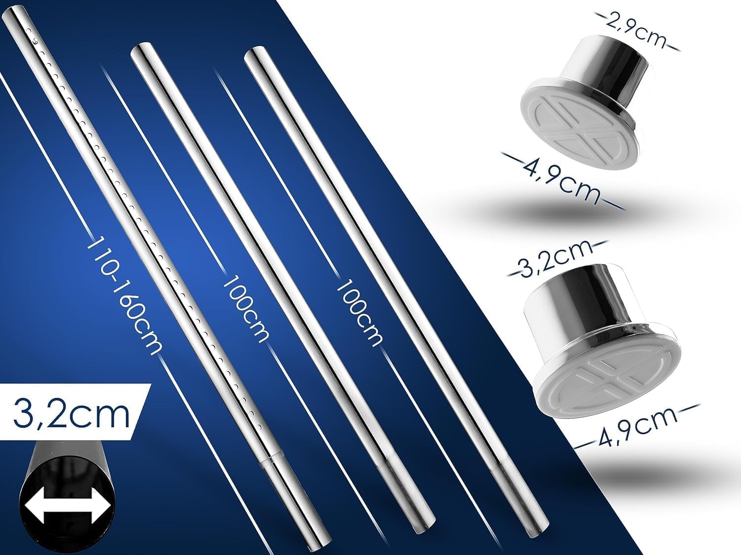 MEISENBERG Shower Rod without Drilling 310-360cm, Silver, Γ 32 mm, Telescopic Rod for Clamping - Telescopic Curtain Rod for Curtains, Shower, Door Openings, and Wardrobe