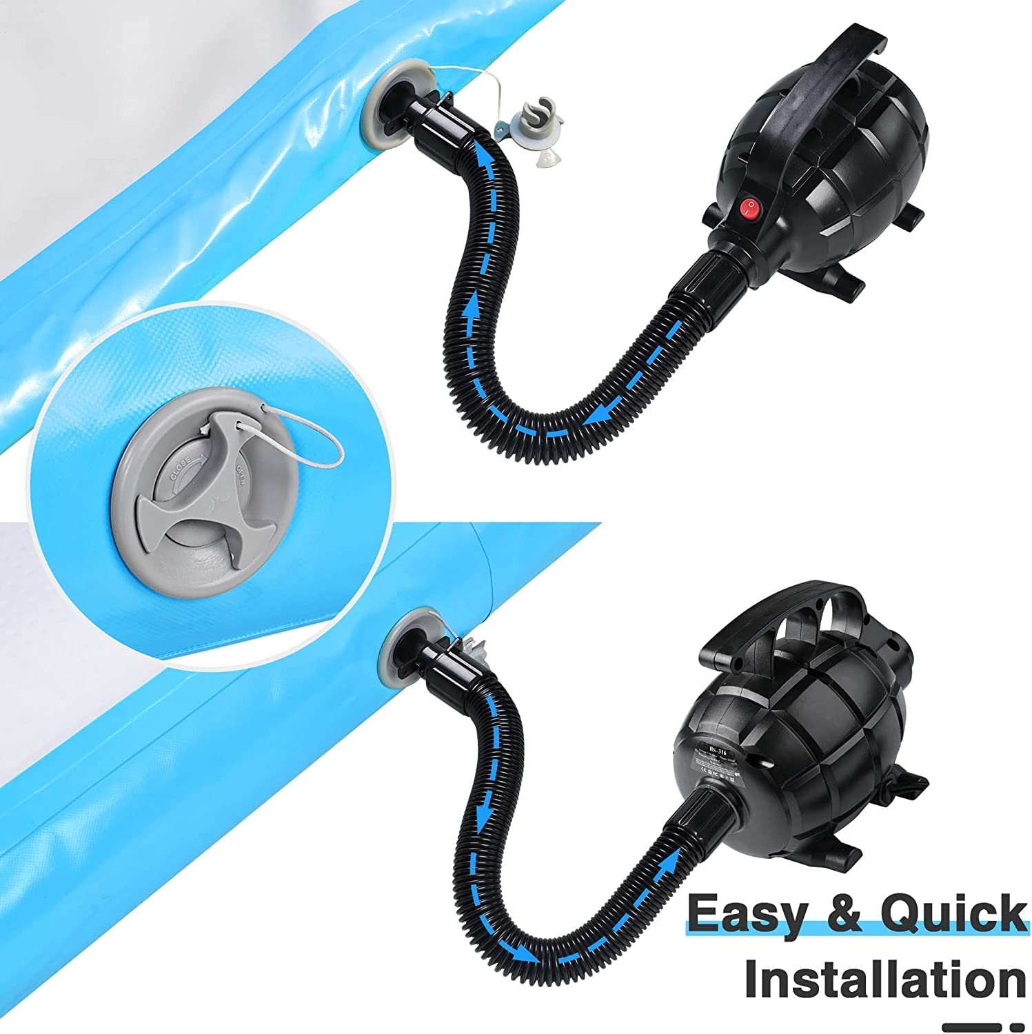 ["🤸【Durable and Safe】The air turn track mat adopts sandwich hammer joint material and double-layer durable PVC waterproof material, which is not easy to deform under pressure and does not generate noise during training. All joints are reinforced for better airtightness and durability. The turn mat is made of comfortable and elastic materials that can withstand training needs and provide sufficient cushioning and protection, making it a safe gymnastics mat.","🤸【Wide Range of Applications】Inflatable gymnastics mat can be placed for high-performance training on the floor of a fitness studio. The training mat can also be used for home, school, gym, yoga, parks, water flotation, dance fitness clubs, leisure centers, sports competitions, climbing, jumping, professional training, and rental companies. It can also be used perfectly on outdoor beaches, indoor courtyards, meadows, camping, and parties.","🤸【Convenient Inflation and Deflation】The air tracking mat is equipped with a professional inflation pump. It can quickly fold and roll out because it takes up less space after deflating. The valve of the inflatable mat has a good leak-proof function, which can keep the gymnastics mat under pressure for several days. Attention: After inflation, please make sure the valve is closed and the elastic button is fully ejected.","🤸【Increasing Training Safety】The Air Tracking gymnastics mat is prepared for high-intensity training and free movement. Compared to other training equipment, inflatable air track pads improve the reuse rate and reduce the risk of landing. It is suitable for various levels of rolling competitions and repetitive training. It is the ideal training set for children and adults.","🤸【Excellent After-Sales Service】Our excellent and innovative quality leads us to continuous growth, and our perfect service ensures customer satisfaction. We guarantee to provide high-quality service to every buyer. If you have any problems using our product, please notify us as soon as possible and we will resolve them immediately.","🤸【Caution】Use the cushions to ensure that they stay away from sharp objects and heat and fire."]