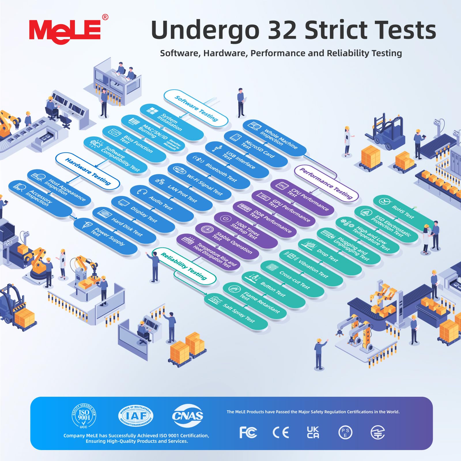 ["Expandable Storage Option"] MeLE fanless PC equipped with 16GB LPDDR4x in single channel (max 4266MHz) and ROM 512GB (256GB SSD + 256GB eMMC). Features an M.2 2280 slot for PCIe3.0x4, Theoretical data speed 3940MB/s. Expandable storage up to 4TB by 1* M.2 2280 SATA SSD & NVMe SSD. 1*Micro SD expandable up to 2TB. (Note: SSD/Micro SD not included, does not support 2.5" HDD)