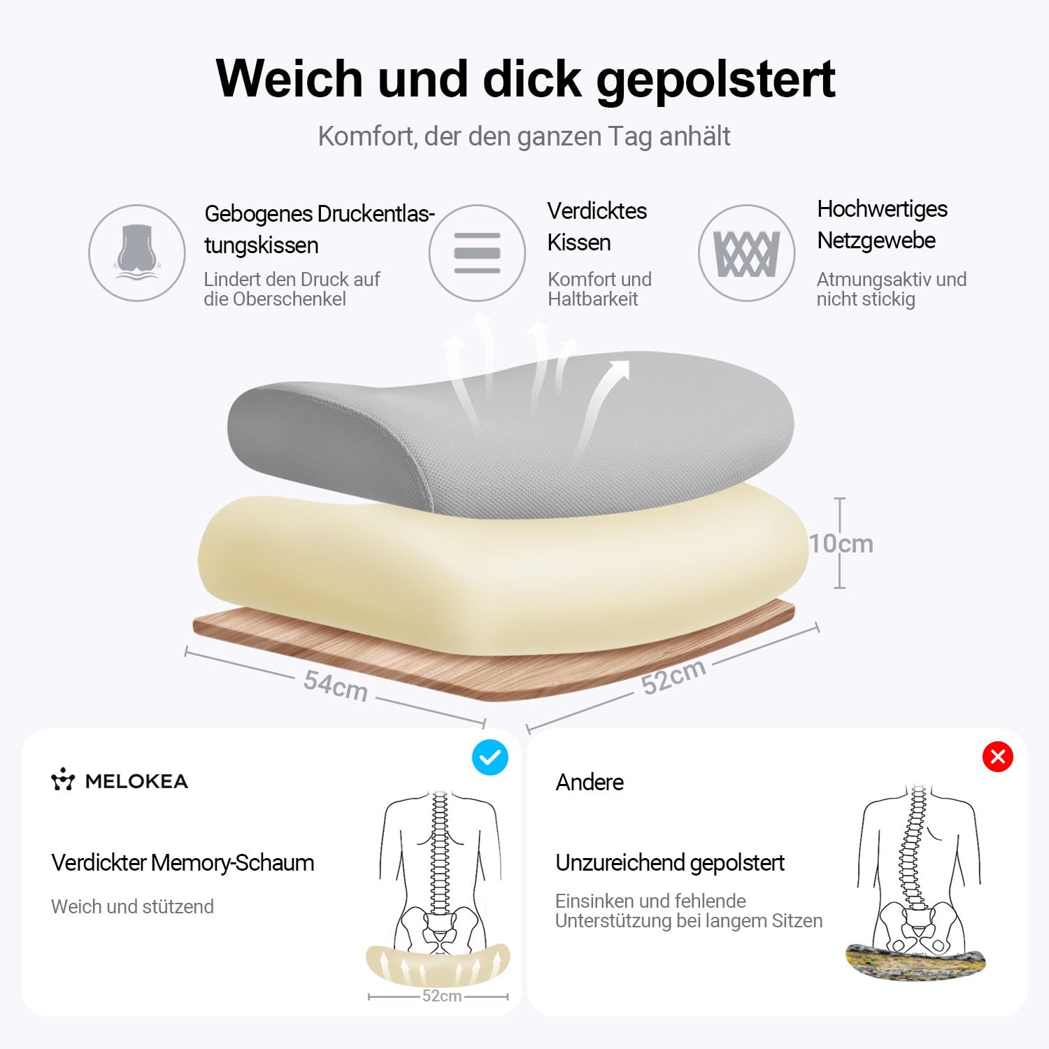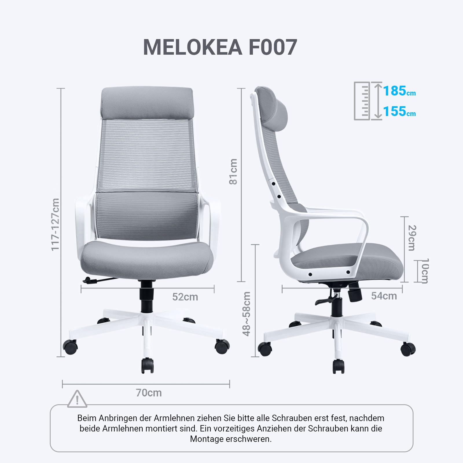 MELOKEA Office Chair Ergonomic, Desk Chair with Adjustable Headrest, Wide Seat Cushion, Lumbar Support, Office Chair 440 lbs, Mesh Chair, Home Office Chair, EN 1335 Computer Chair, Gray