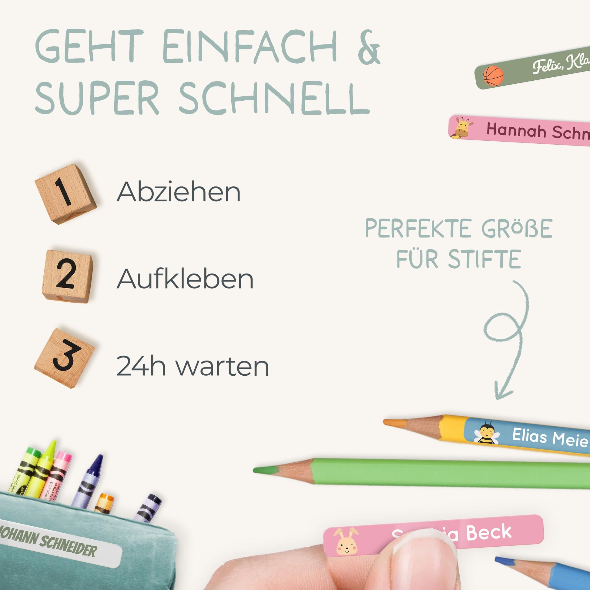 "✔️ DON'T LOSE ANYTHING: Our name labels are easily attached to pens, markers, rulers, pencil cases, etc. and help prevent the loss/mix-up of personal items - stickers are not suitable for clothing.