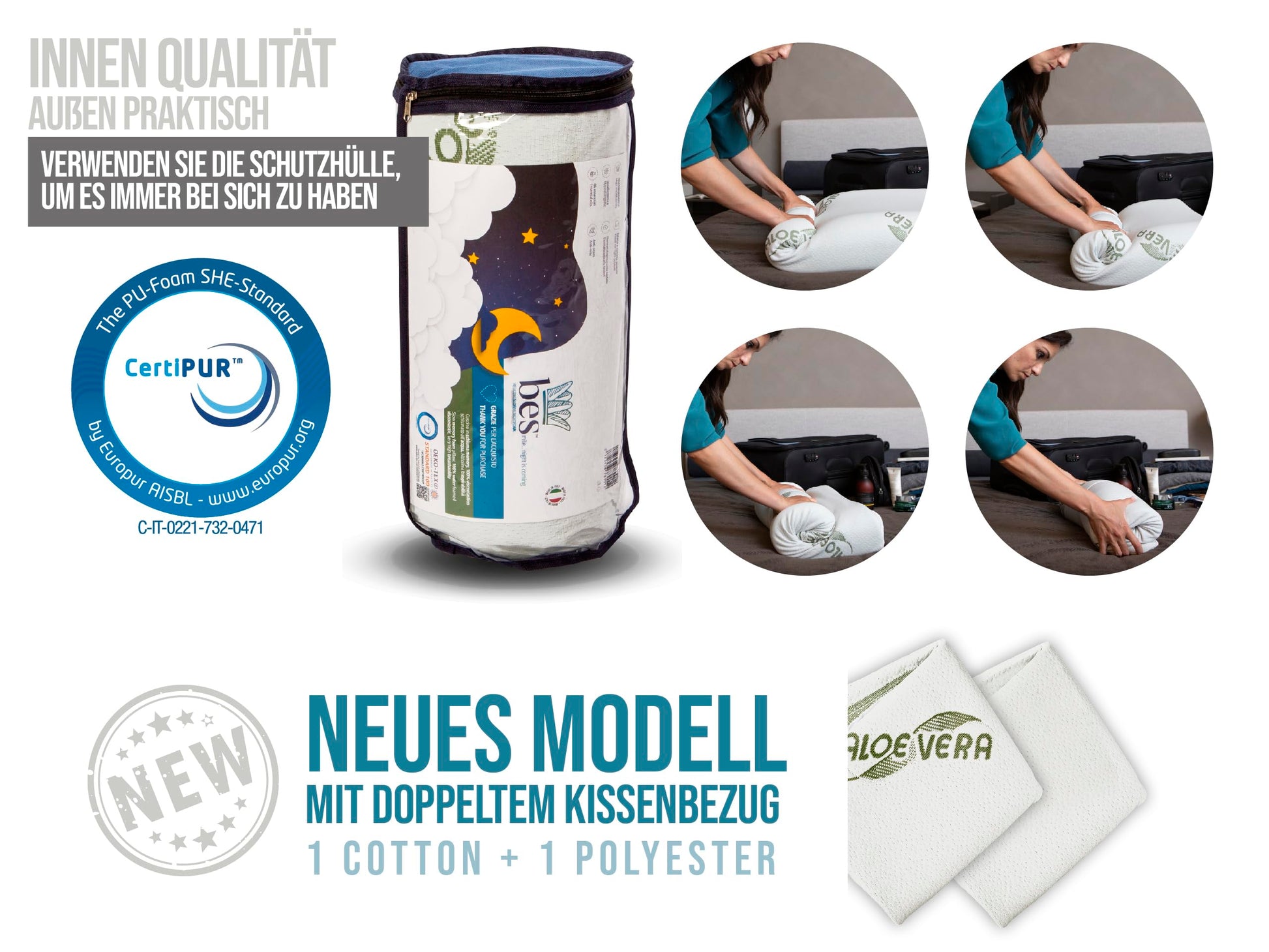 "VIELSEITIG UND PRAKTISCH: ➤ Ideal als Reisekissen, leicht aufzurollen und in der mitgelieferten platzsparenden Hülle zu verstauen."