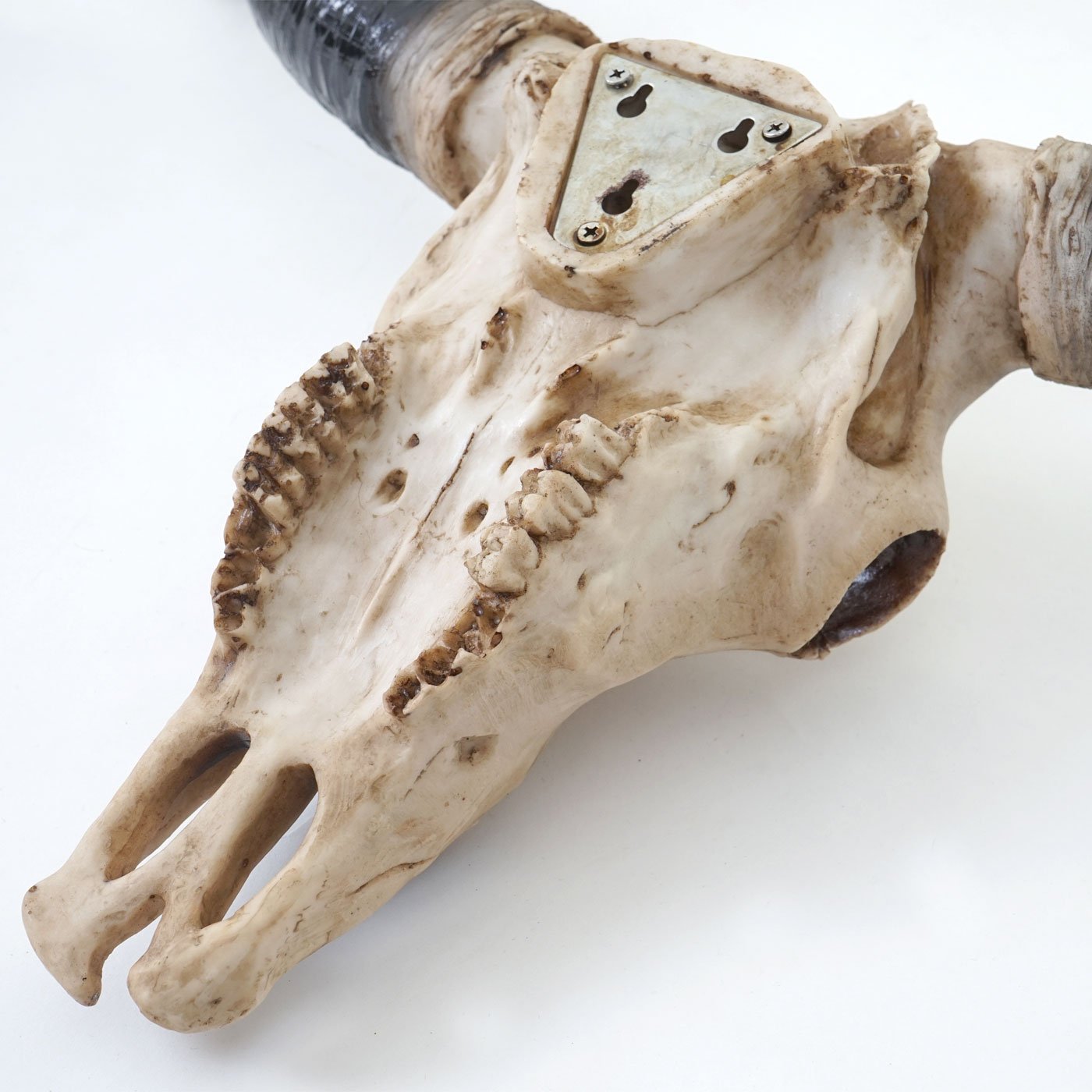 ["Brand owner is QM ISO9001 certified. Proof + information can be found in the imprint. It is not a product certification.","Delivery scope: 1x Longhorn skull | Including fasteners | Nature accurately modeled | Elaborately crafted | High break resistance | Weatherproof | Frost proof up to -10° C | Impressive and effective | Creates a great atmosphere","Dimensions (HxLxW): 37x12x75.5cm | Material: Polyresin (artificial stone) | Color: Natural","Overall dimensions (approx.): Height: 37 cm. Width: 75.5 cm. Depth: 12 cm. Skull without horns: Height: 30 cm. Width: 17 cm. Weight (approx.): 2 kg. Are you looking for a special and eye-catching decoration for your space? Then this Longhorn trophy is for you..."]