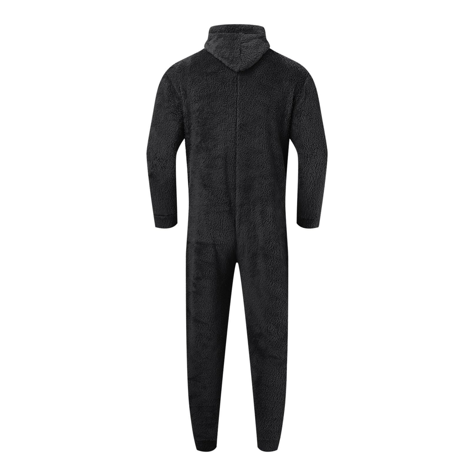 Men's teddy fleece jumpsuit onesie in large size, perfect for winter nights. Warm and fluffy with a hood, this cozy sleepwear is great for lounging around.