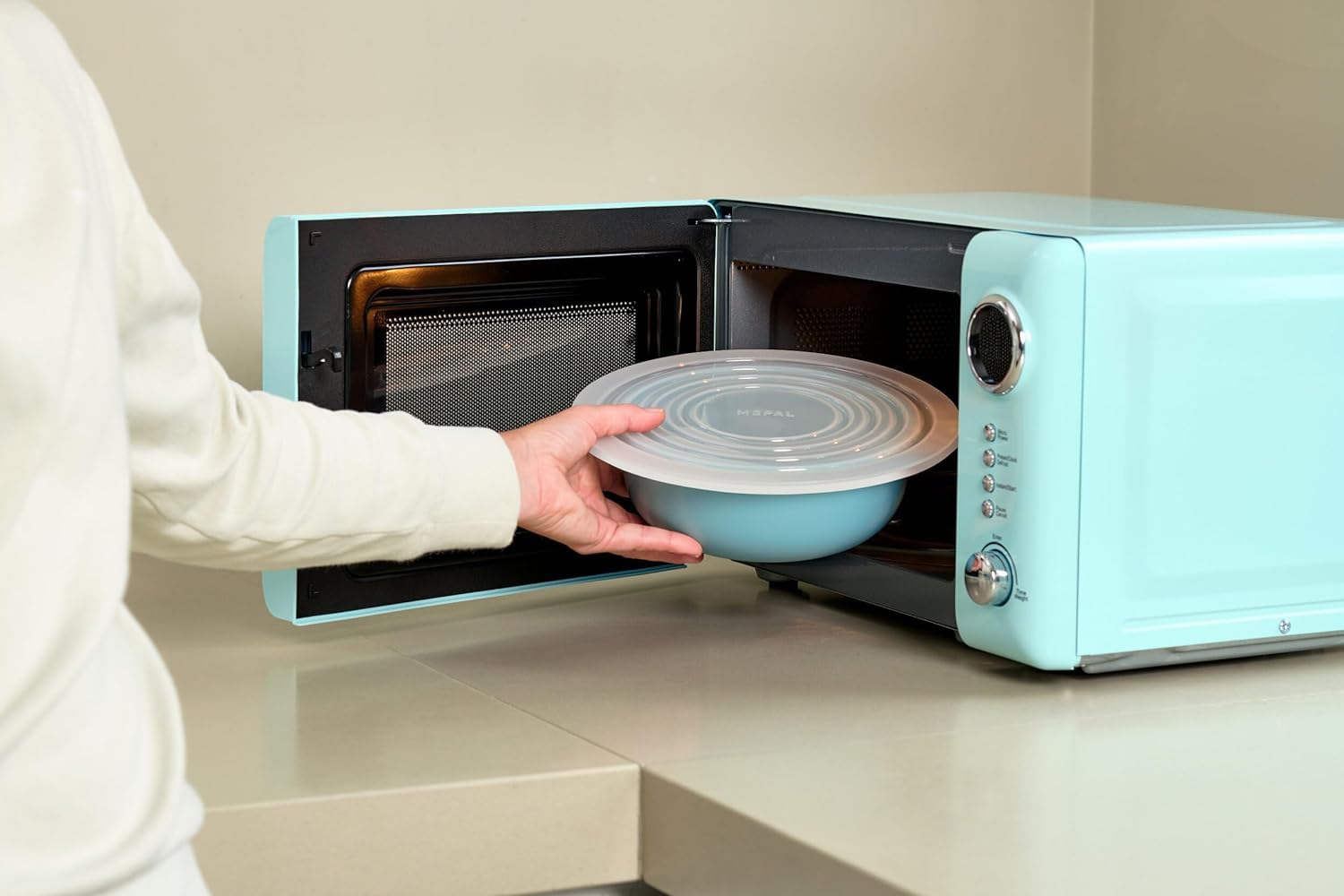 "STARTER SET: Includes Cirqula microwave lid in Round - Transparent, heat-resistant lid - dishwasher safe"]