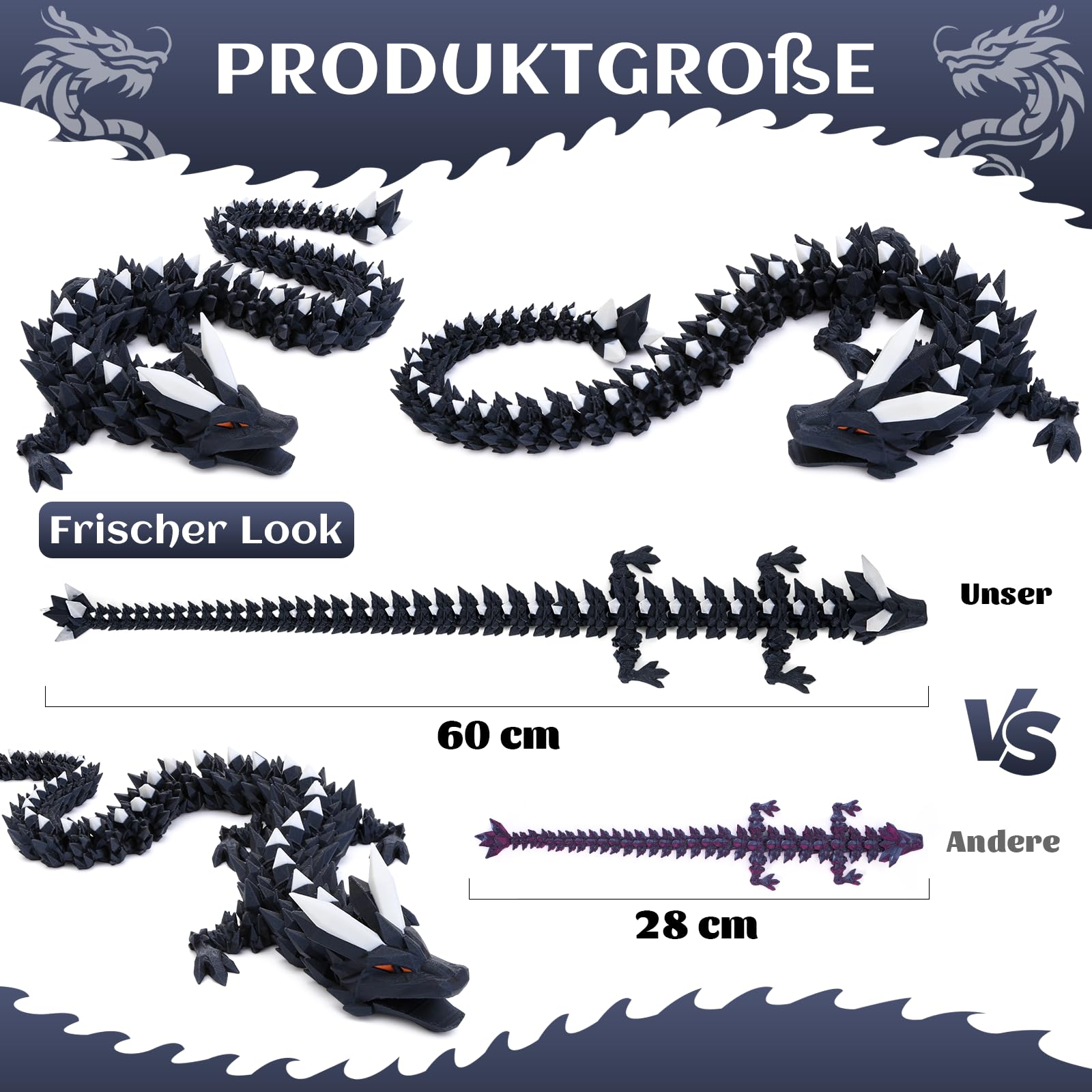 Merrwon 3D Printed Dragon, 60CM Dragon Toy with Eyes, Mysterious Realistic Dragon Figures, Movable Joints Crystal Dragon Deco Desk Toy