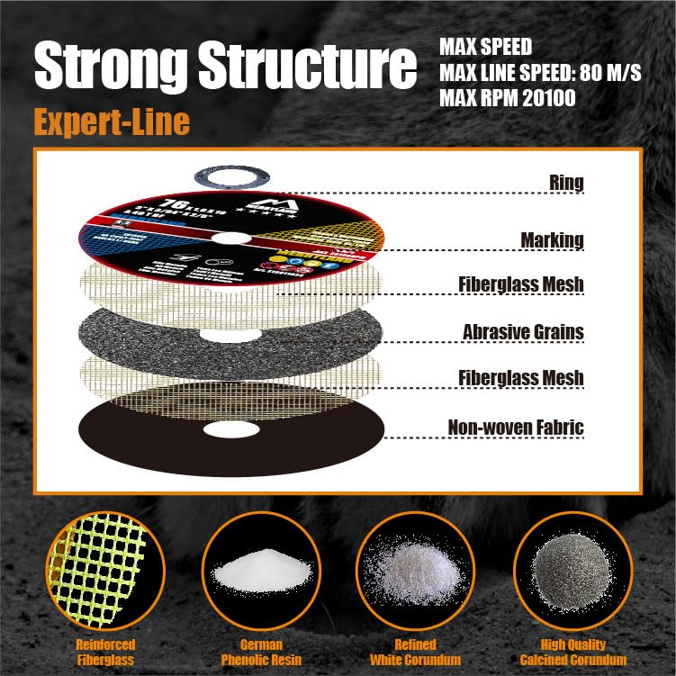 "【REINFORCED STRUCTURE & SAFETY GUARANTEED】76 X 1.0 X 10 mm Thin cutting disc. 1.0 mm thickness Professional Flex Disc, 2 layers reinforced fiber mesh, Max RPM 20100, According to EN 12413, MPA Certified. Safety Guaranteed!",