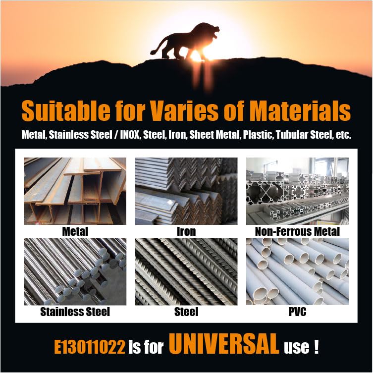 "【WIDE APPLICATION & UNIVERSAL USAGE】Metal, stainless steel / INOX, steel, iron, sheet metal, plastic, steel pipe. Suitable for cutting a variety of materials. E13011022 is GOOD at UNIVERSAL Cutting!",