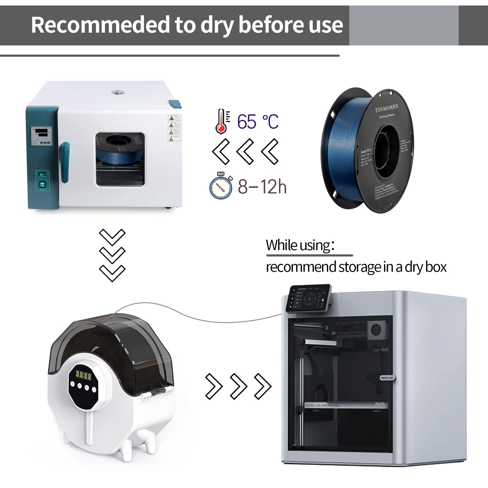 ["Less Prone to Tangling and Clogging"] With a diameter of 1.75±0.03mm, the TINMORRY PETG filament is completely mechanically wound and manually strictly controlled to ensure clean winding and easy feeding. The new formula also significantly improves print quality by reducing clogging and nozzle clumping compared to other PETG brands.