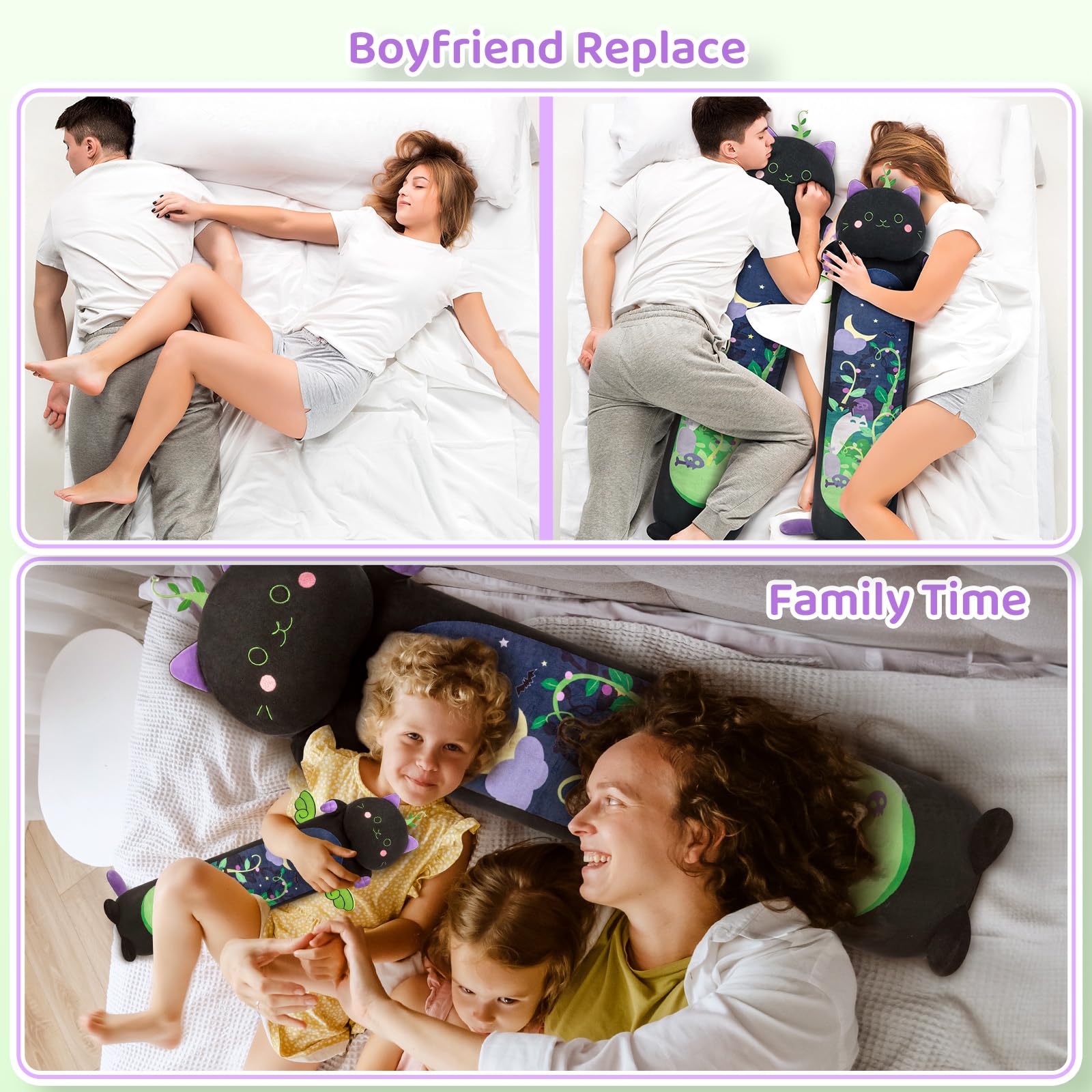["Super soft plush pillow: Our kawaii long cat plush toy is elaborately made of super soft spandex fabric and filled with down cotton. When hugging a long cat plush, you will feel very comfortable and elastic with a soft touch and delicate texture. Ideal for all stuffed animal lovers and plush toy fans.","Multipurpose Long Throw Pillow: Side sleeper cat pillow in multiple sizes provided for you. This is the best lumbar pillow when sitting on a sofa, and also the most comfortable sleeping pillow for sweet dreams on the bed. Perfect as stuffed animals, especially for those who love a Long Cat plush toy.","Size: 50 CM. It is very suitable for hugging. It usually takes several times to fully recover. If you put the filled pillow in the sun or dryer, it will recover better. Stuffed animals like this are especially popular with children. Ideal as a plush cat toy.","Sleep Companion: The soft body pillow will appeal to all age groups, from baby to adult, perfect for bedrooms, living rooms, and offices. These cat plush toys are not only suitable as sleep pillows, but also as a nice companion for cozy hours on the sofa. Ideal for relieving stress and providing emotional support. These plush toys offer moments of well-being.","Perfect Gift: Soft plush cat pillow with stuffed animals is perfect for playing, collecting, and cuddling. Many people will love this cute plush pillow for reading, watching TV, learning, and taking a nap. Ideal for gifts for birthdays, Christmas, Thanksgiving, Children's Day, Valentine's Day, etc. A fun gift for any plush lover."]
